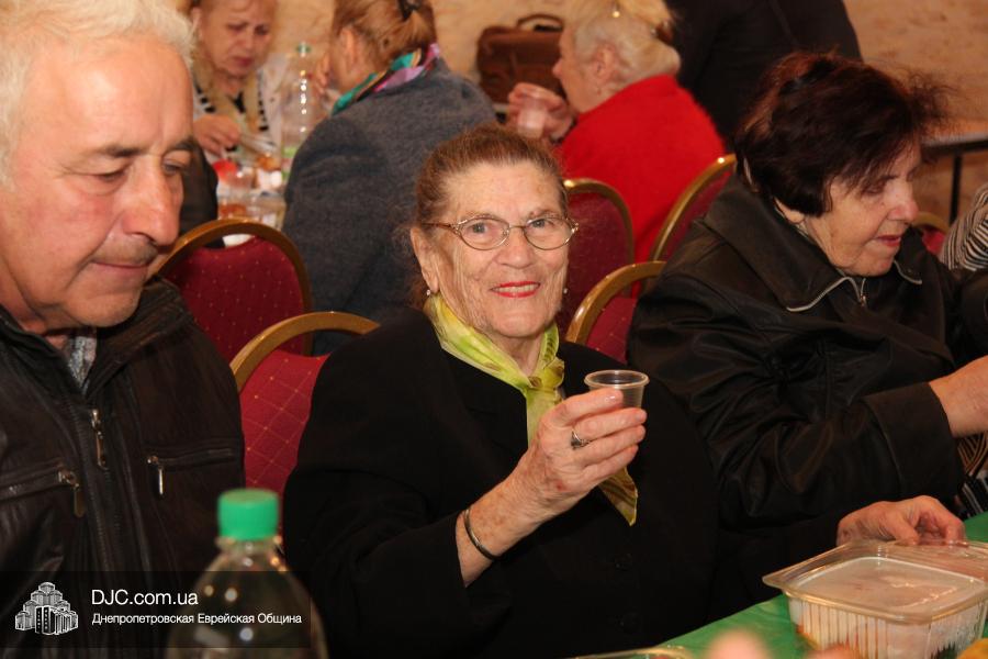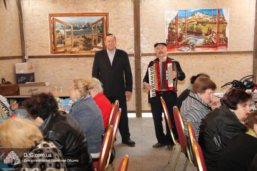 Здесь пожилые люди смогли выполнить заповеди праздника, вкусить кошерную трапезу в сукке, насладиться большой концертной программой еврейских песен в исполнении заслуженного деятеля культуры Украины, популярного автора и исполнителя Владимира Рогового.