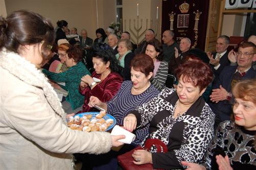 2 декабря – большое детское торжество в мариупольской синагоге. Пришло очень много людей, некоторые семьи пришли представленные сразу тремя поколениями. В честь праздника ученики вечерней школы «ОР-АВНЕР» подготовили замечательное выступление: пели еврейские песни, посвященные Хануке, читали стихи на русском и английском языках, участвовали в конкурсах и викторинах на знание истории и обычаев Хануки, изготавливали тематические поделки. Победившим в различных конкурсах вручили призы. После выступления каждый ребенок получил сладкий подарок в честь Хануки.