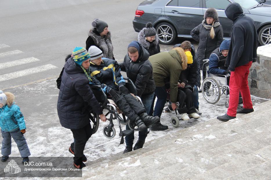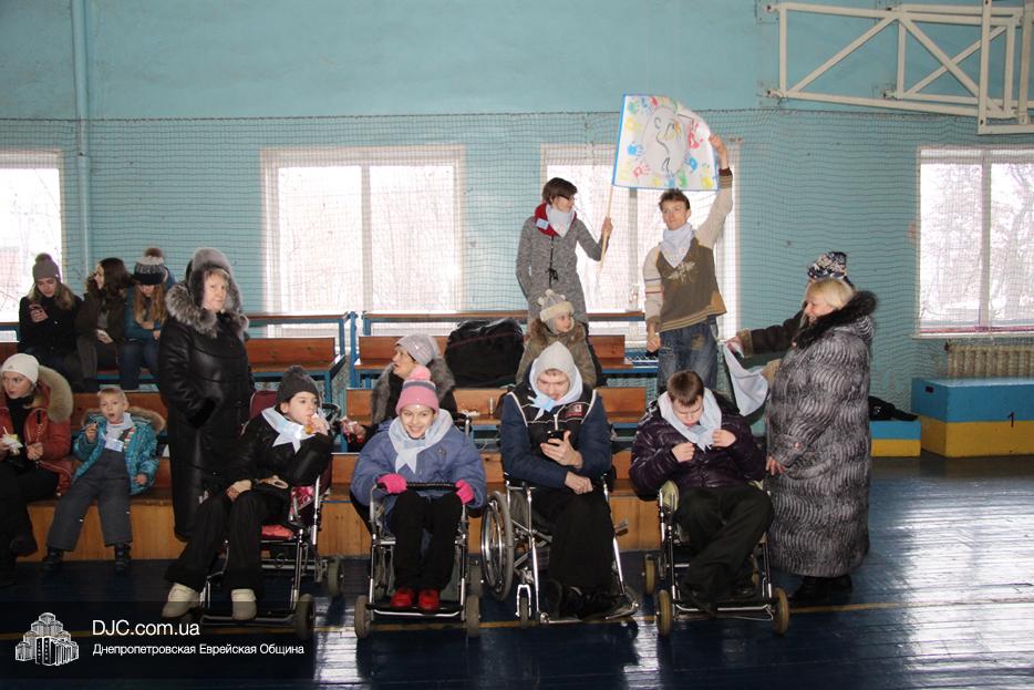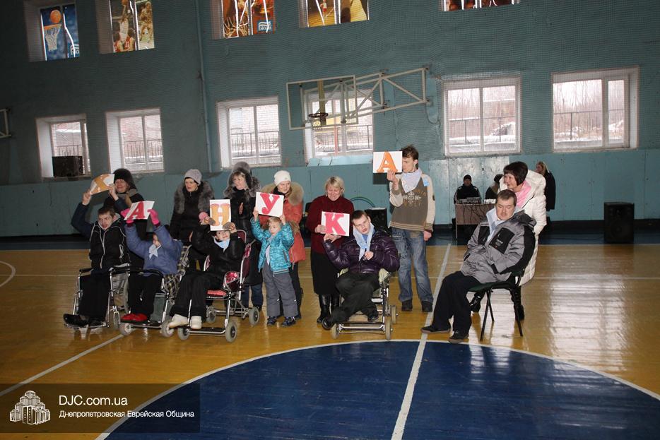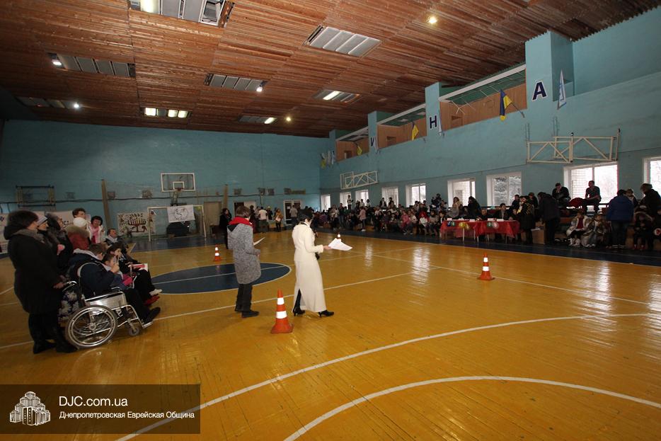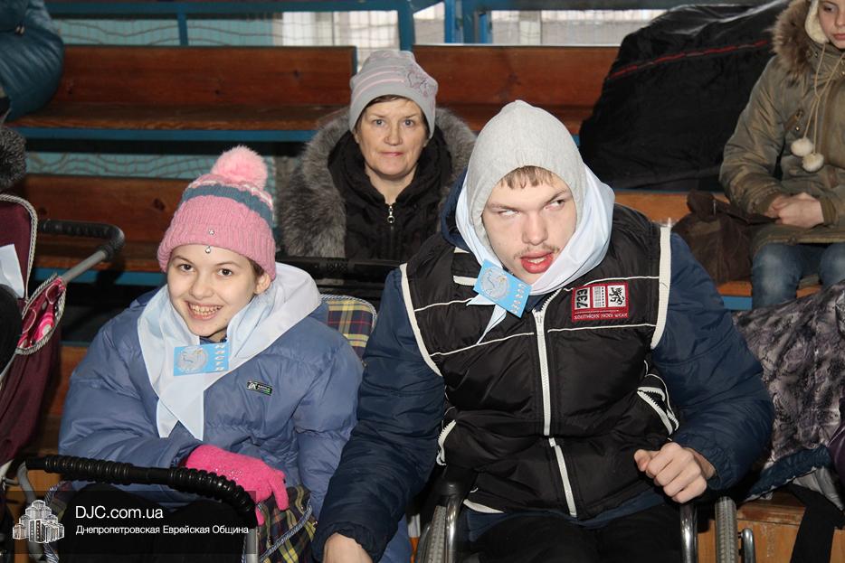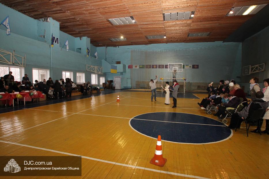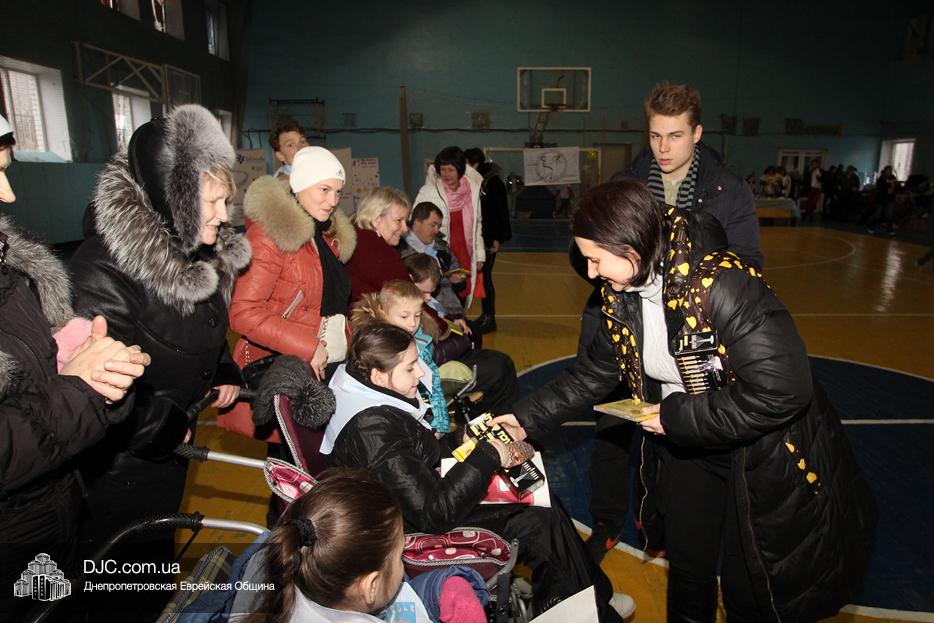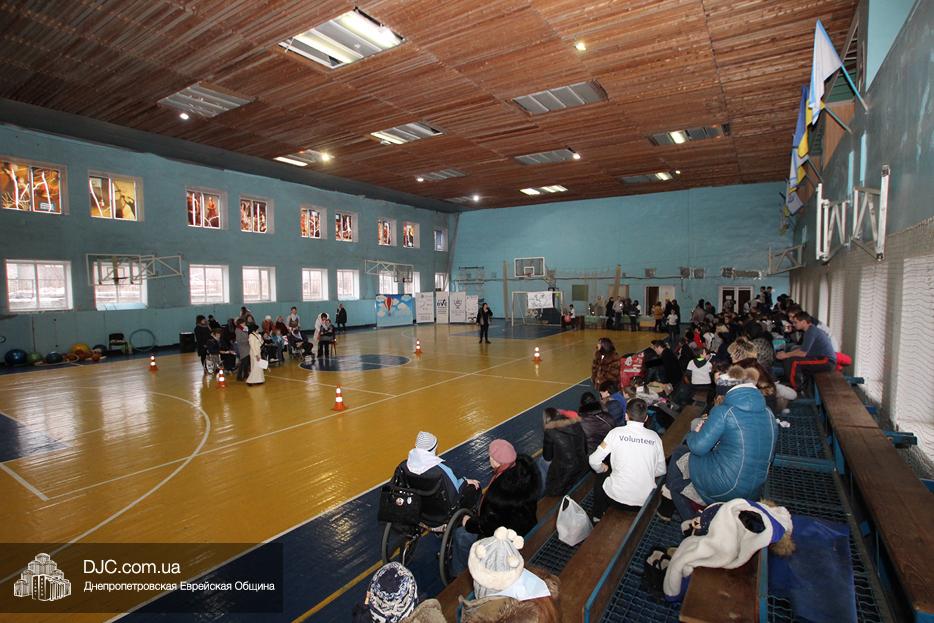 Кстати, здесь надо заметить, что мероприятие проходило в спортивном зале комплекса «Динамо», что на улице Костомаровской (бывшей Щорса). Этому комплексу организаторы сказали много слов благодарности – за теплый прием, за радушие, за поддержку, ну а мы, как журналисты, обязаны указать и на полную неприспособленность комплекса для посещения людьми с ограниченными возможностями и на то, что, несмотря на «теплый прием», в спортивном зале было до чрезвычайности холодно. Если бы не волонтеры и активисты, дети из «Маале» не смогли бы попасть на этот праздник – даже здоровому сильному человеку ходить по темным, крутым лестницам и коридорам здания весьма рискованно.