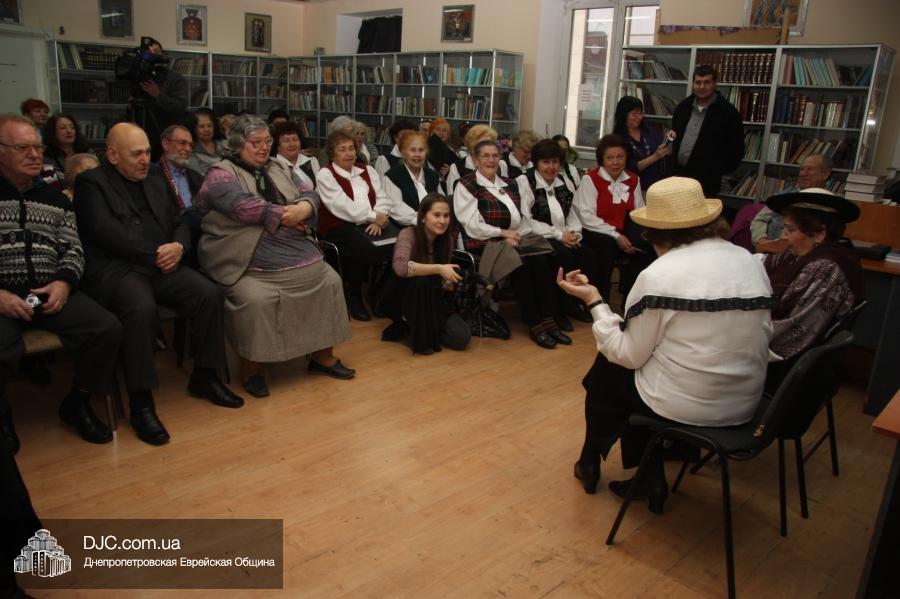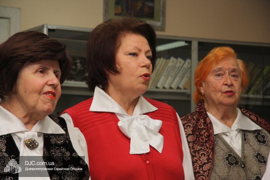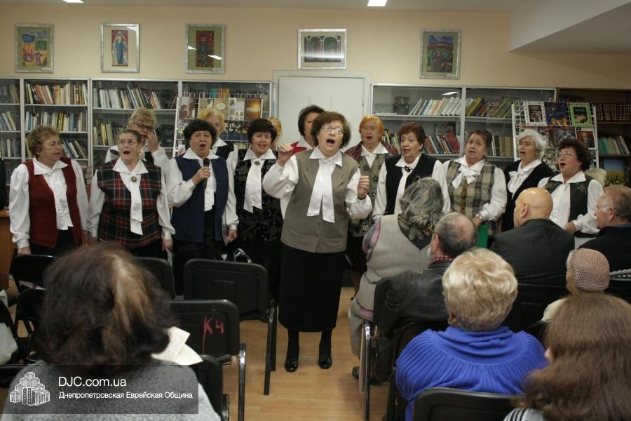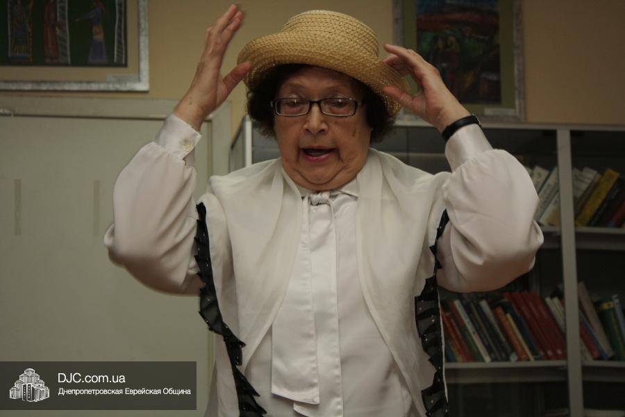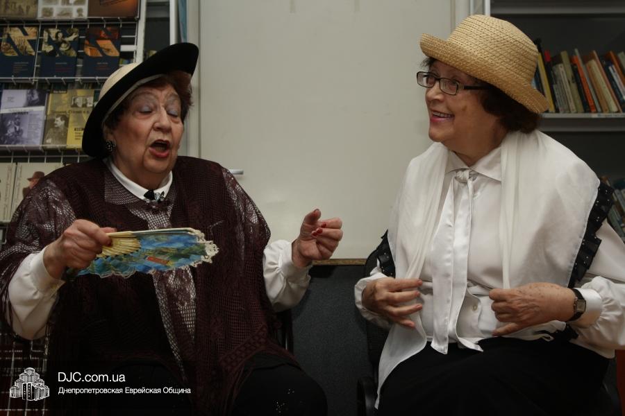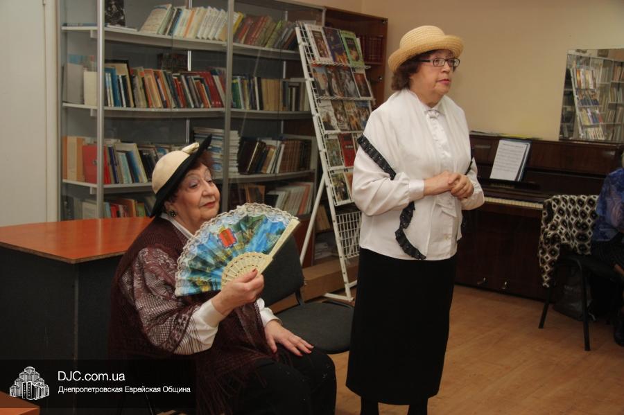 Затем хор Хеседа «Голдене Мейделах» во главе со своим руководителем Норой Крупман исполнили попурри из израильских песен. Две участницы хора поразили всех искрометной театральной сценкой, поставленной по отрывку из произведения Юрия Полисского «Еще вчерашний день», а сам писатель, тоже присутствующий на мероприятии, рассказал о получении им престижной литературной премии «Золотое перо России», и даже показал привезенную собой награду.