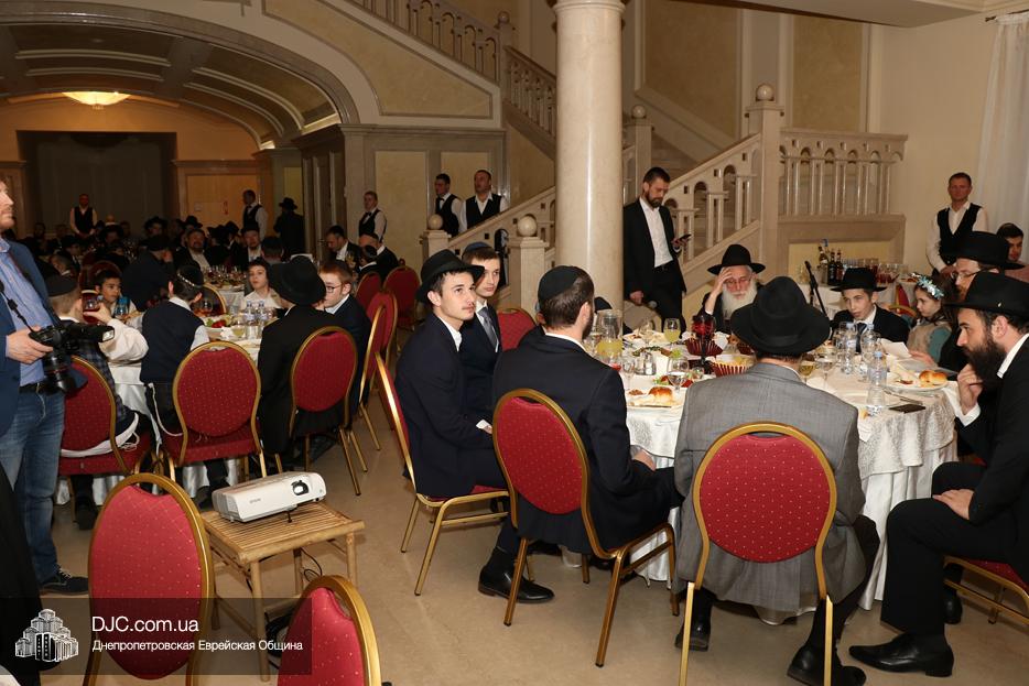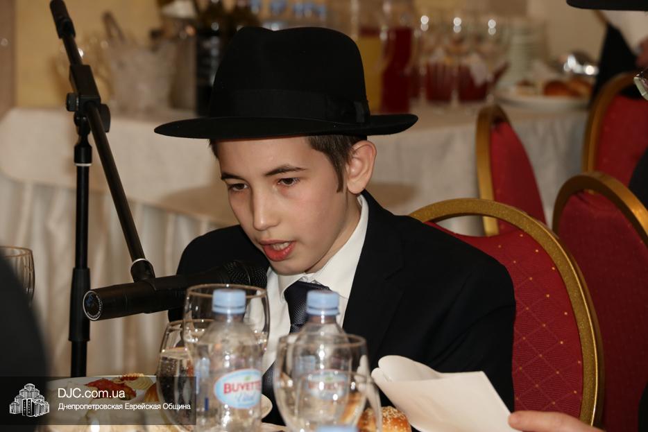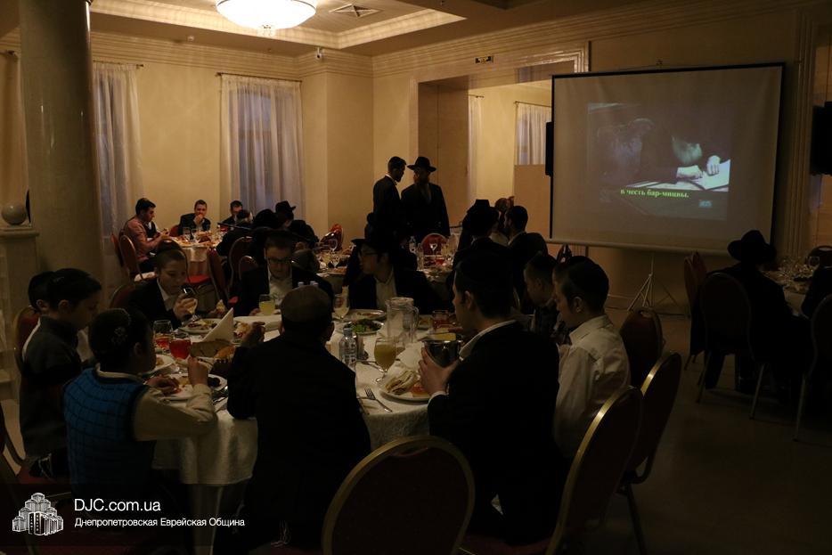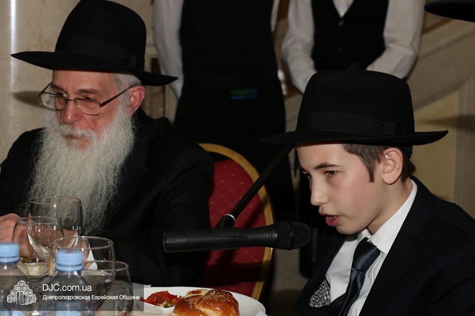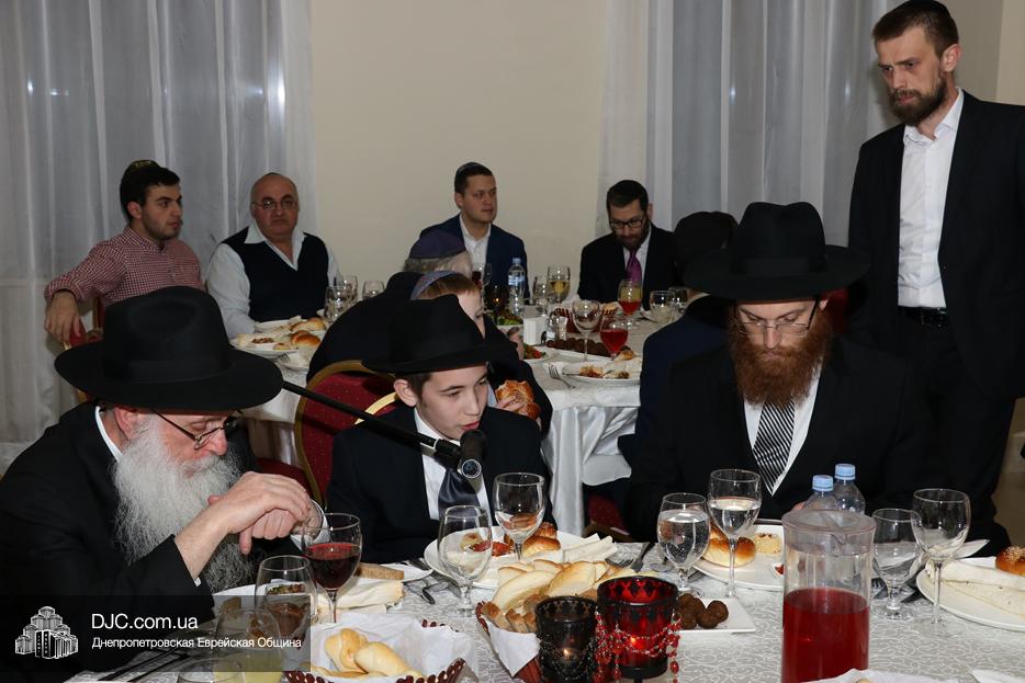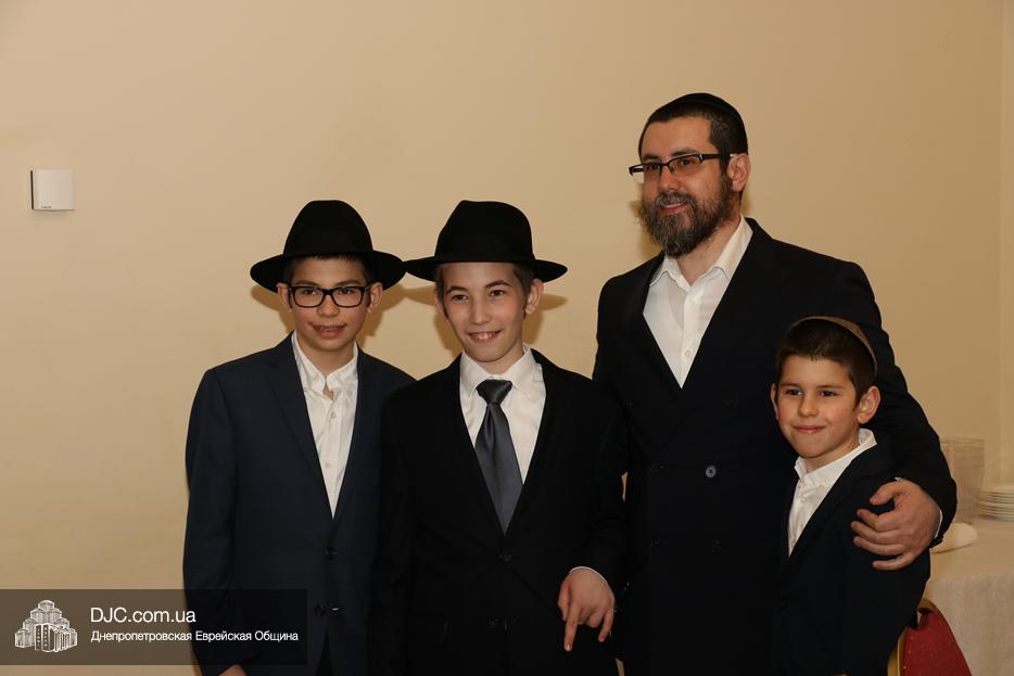 Разделить радость семьи Глик были приглашены родственники и близкие главного виновника торжества и многие друзья его родителей, уважаемые члены еврейской общины Днепра и семьи посланников Ребе в нашем городе. Перед началом праздника был организован легкий фуршет. Гости поздравляли бар-мицву, желая ему, чтобы он вырос настоящим хасидом, мудрецом Торы, всегда приносил радость своим родителям и в положенный срок пришел к Торе, Хупе и добрым делам