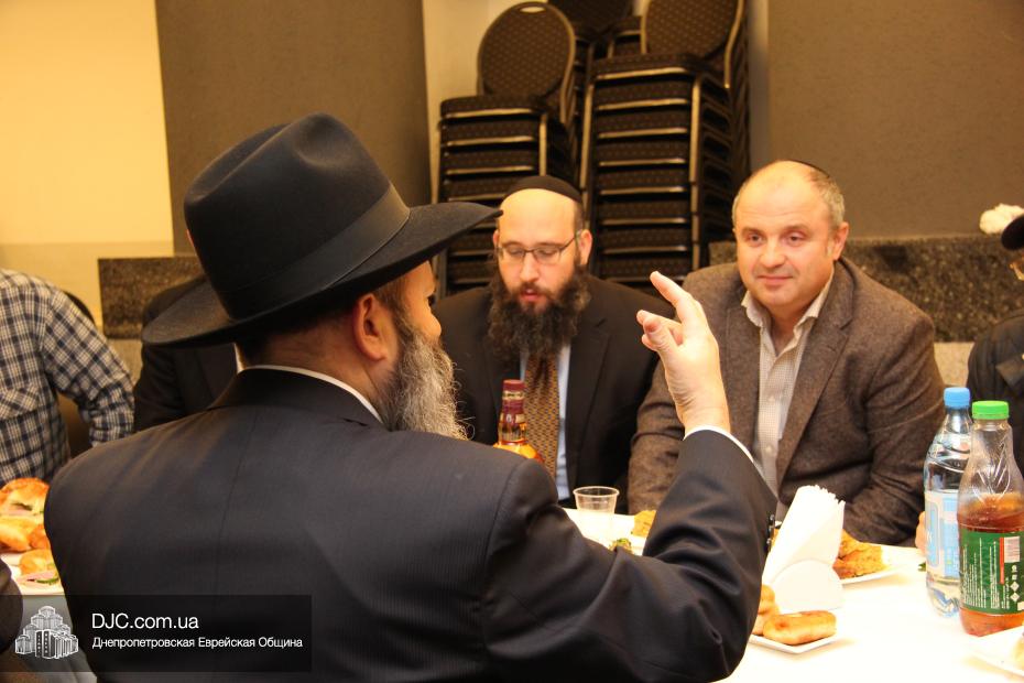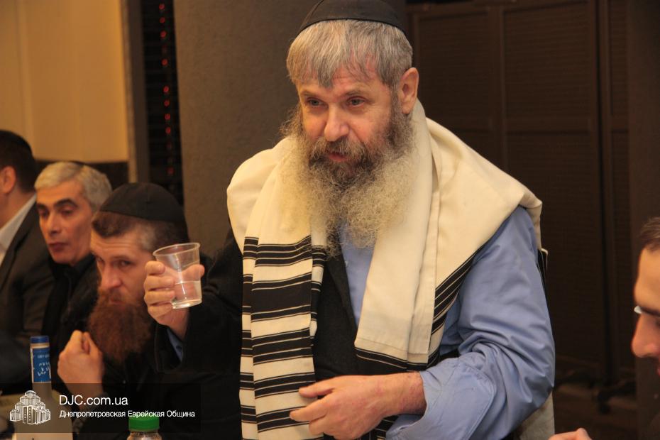 Более подробно о событиях сентября 41 года участникам трапезы рассказал Хаим Леви Гильдин, а Главный раввин Днепропетровска и региона Шмуэль Каминецкий поведал о том, какое важное значение для души, ушедшей из материального мира, имеют действия, которые потомки делают для увековечивания ее памяти.