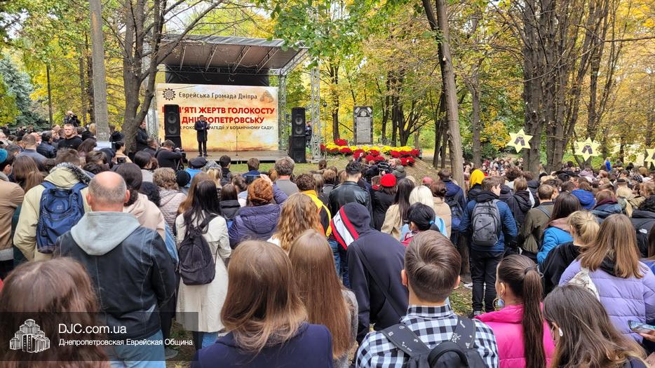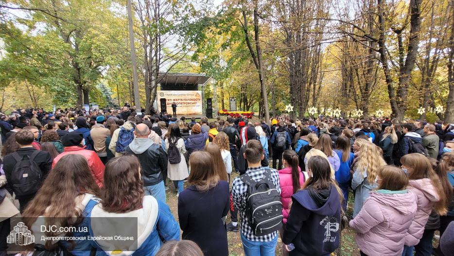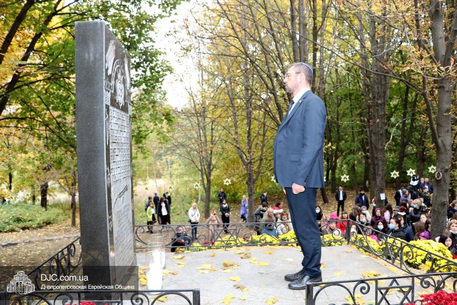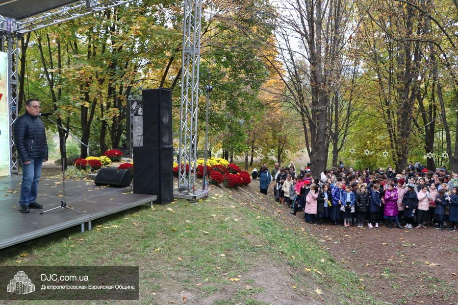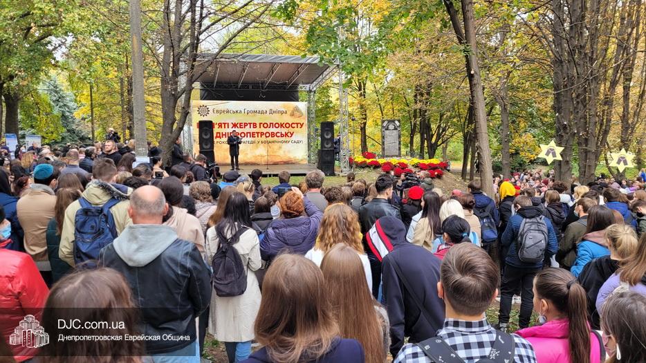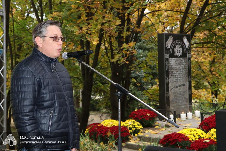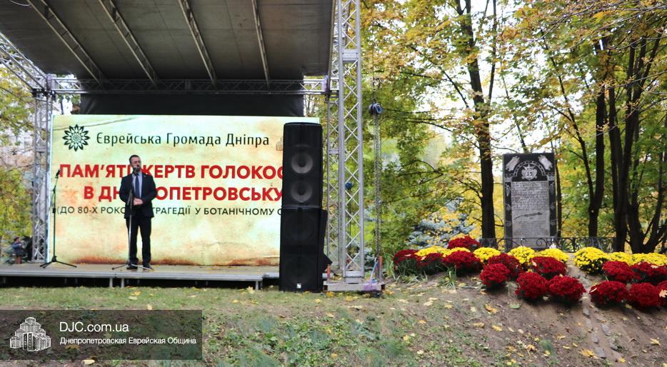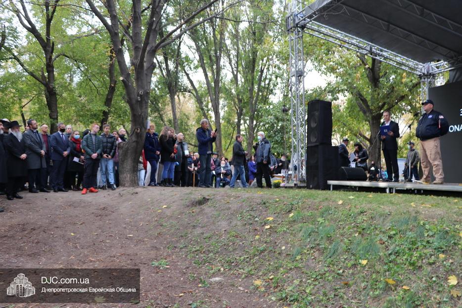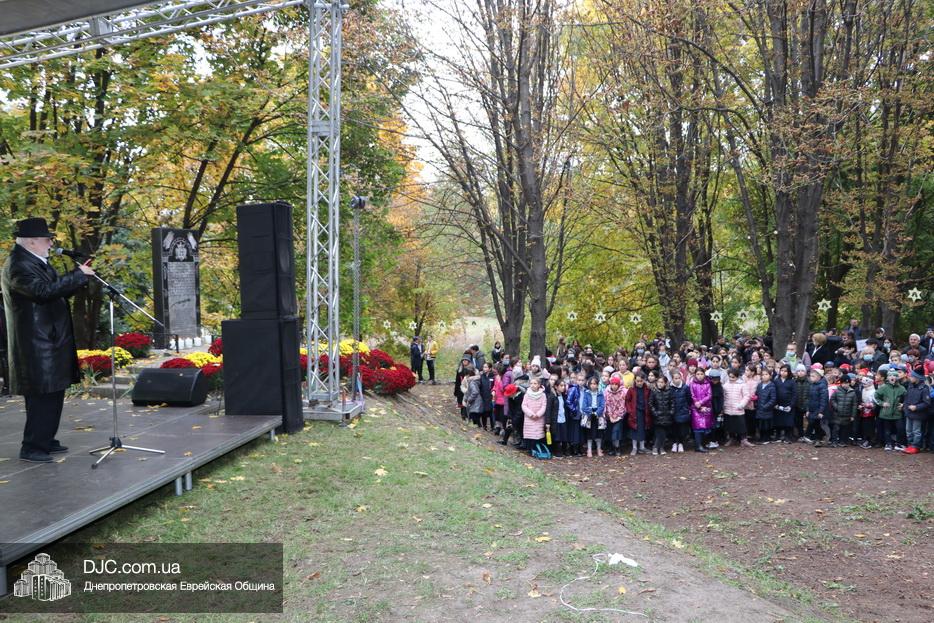 На траурном митинге выступили: Главный раввин Днепра и региона Шмуэль Каминецкий; городской голова Днепра Борис Филатов; ректор Днепровского национального университета им. О. Гончара, профессор Сергей Оковитый; директор общественной организации «Ассоциация Ноосфера» Михаил Рябоконь; Глава представительства «Натив» в Днепровском регионе, Первый секретарь Посольства государства Израиль в Украине Марк Довев; профессор Светлана Мороз, врач, общественный деятель, депутат областного совета; доктор Игорь Щупак, директор музея «Память еврейского народа и Холокост в Украине» и Украинского института изучения Холокоста «Ткума».