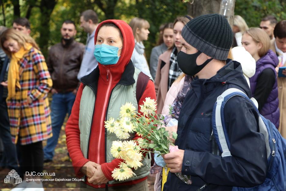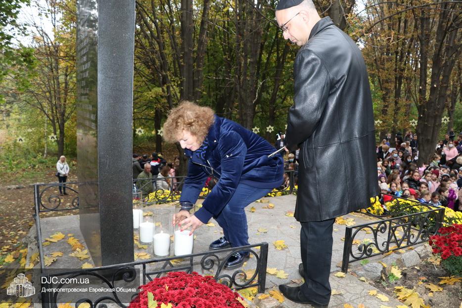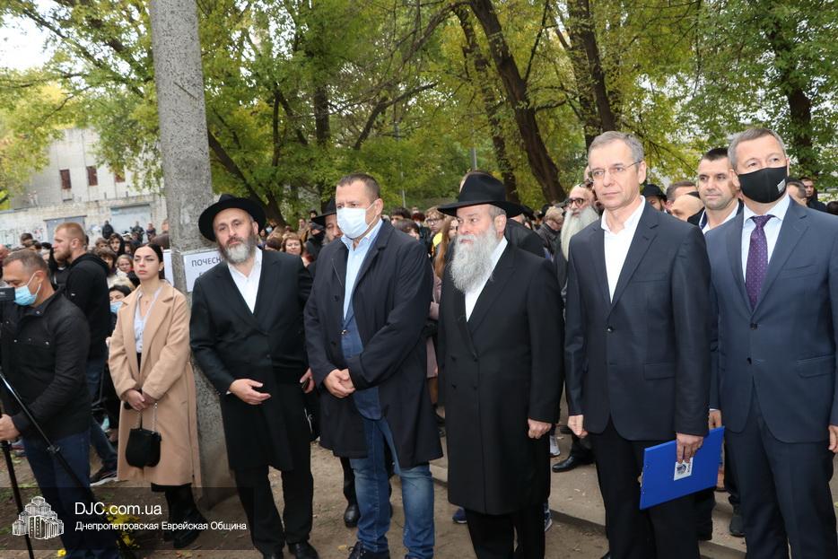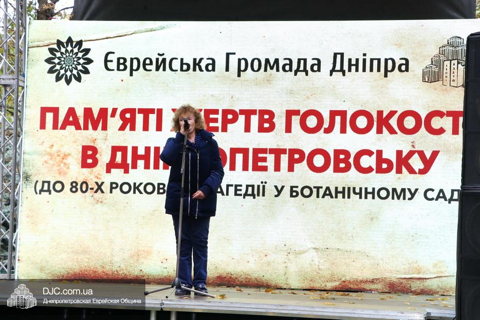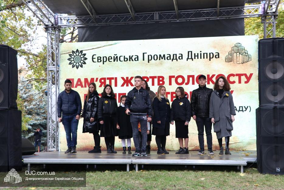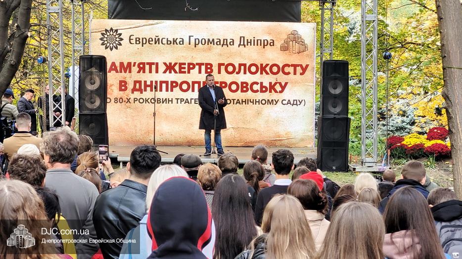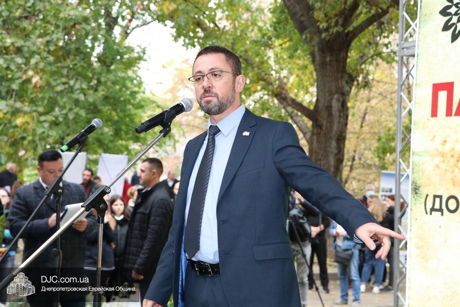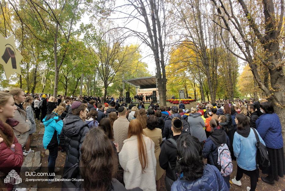 На траурном митинге выступили: Главный раввин Днепра и региона Шмуэль Каминецкий; городской голова Днепра Борис Филатов; ректор Днепровского национального университета им. О. Гончара, профессор Сергей Оковитый; директор общественной организации «Ассоциация Ноосфера» Михаил Рябоконь; Глава представительства «Натив» в Днепровском регионе, Первый секретарь Посольства государства Израиль в Украине Марк Довев; профессор Светлана Мороз, врач, общественный деятель, депутат областного совета; доктор Игорь Щупак, директор музея «Память еврейского народа и Холокост в Украине» и Украинского института изучения Холокоста «Ткума».