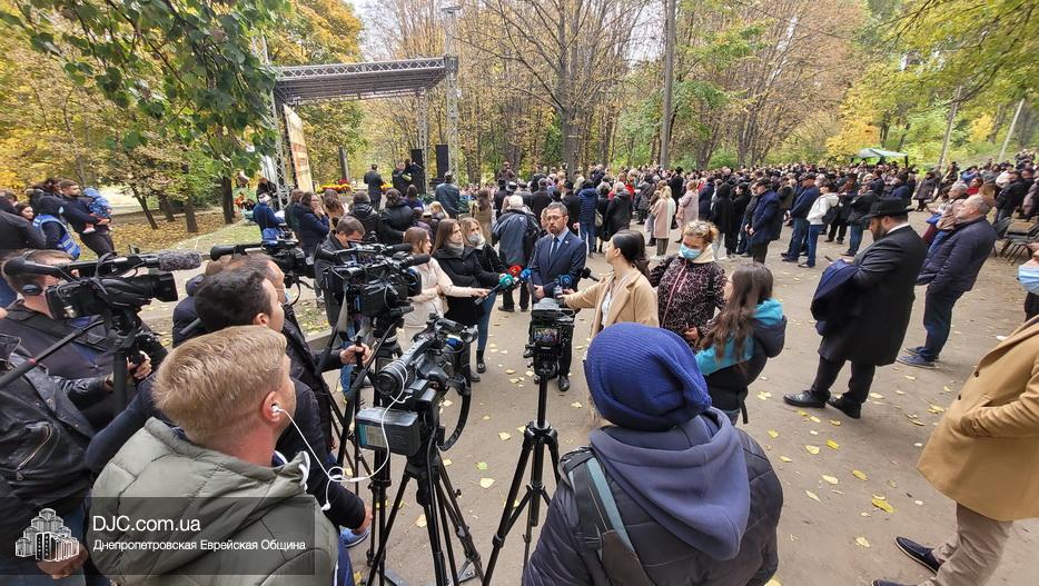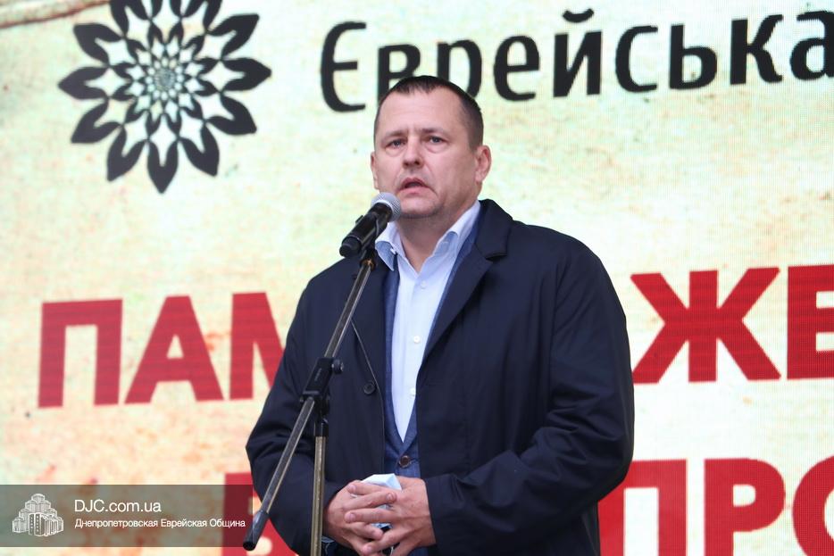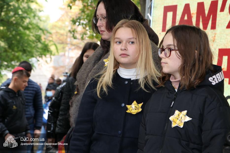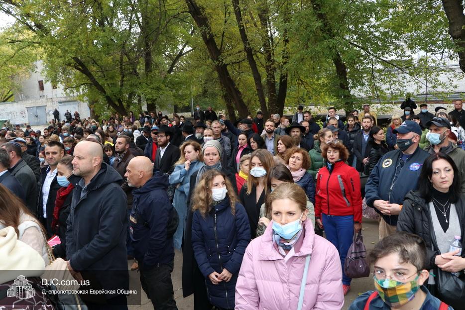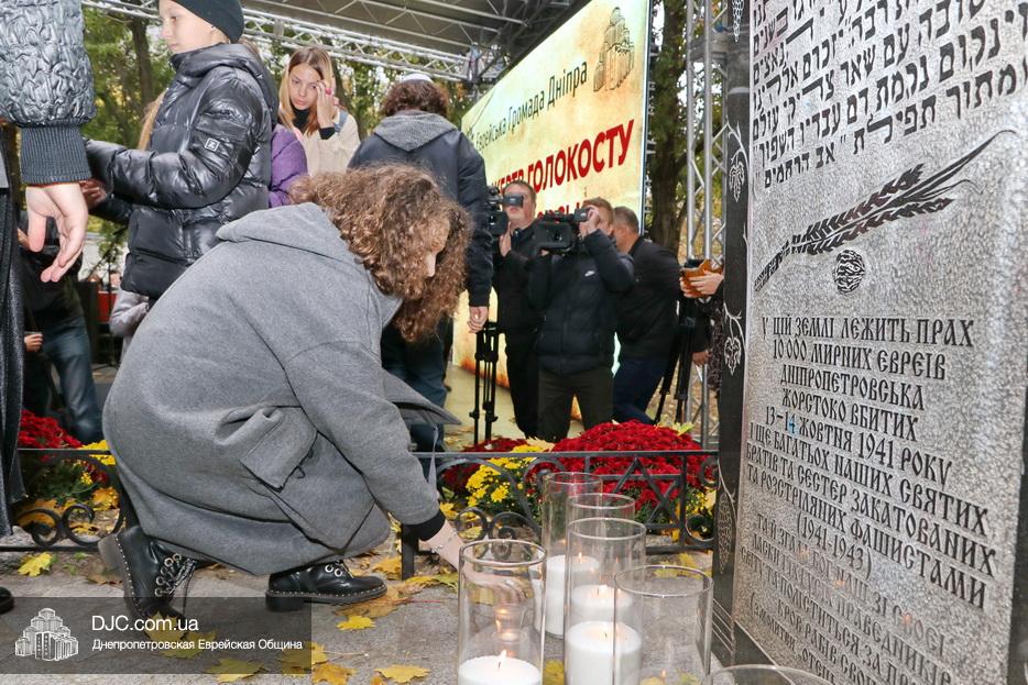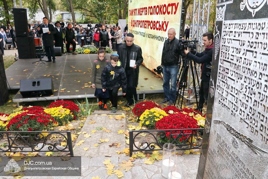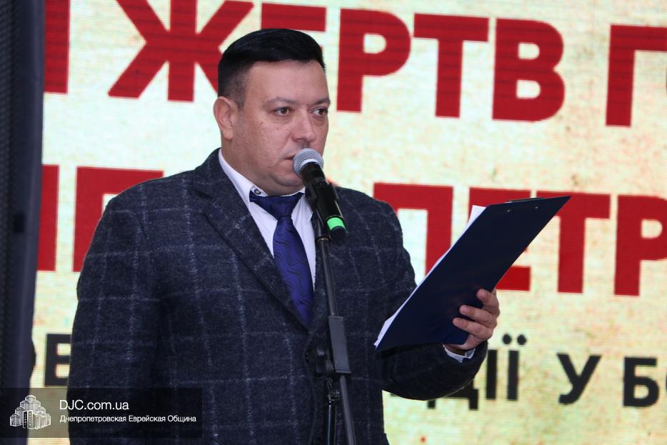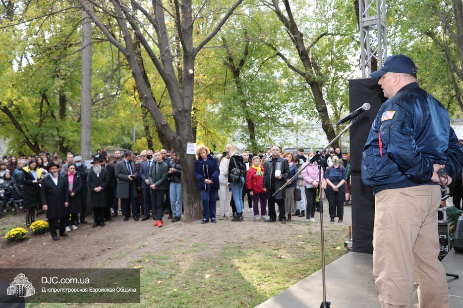 На траурном митинге выступили: Главный раввин Днепра и региона Шмуэль Каминецкий; городской голова Днепра Борис Филатов; ректор Днепровского национального университета им. О. Гончара, профессор Сергей Оковитый; директор общественной организации «Ассоциация Ноосфера» Михаил Рябоконь; Глава представительства «Натив» в Днепровском регионе, Первый секретарь Посольства государства Израиль в Украине Марк Довев; профессор Светлана Мороз, врач, общественный деятель, депутат областного совета; доктор Игорь Щупак, директор музея «Память еврейского народа и Холокост в Украине» и Украинского института изучения Холокоста «Ткума».
