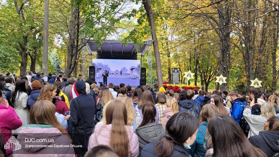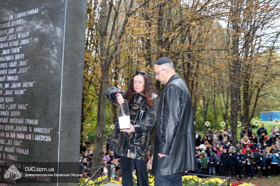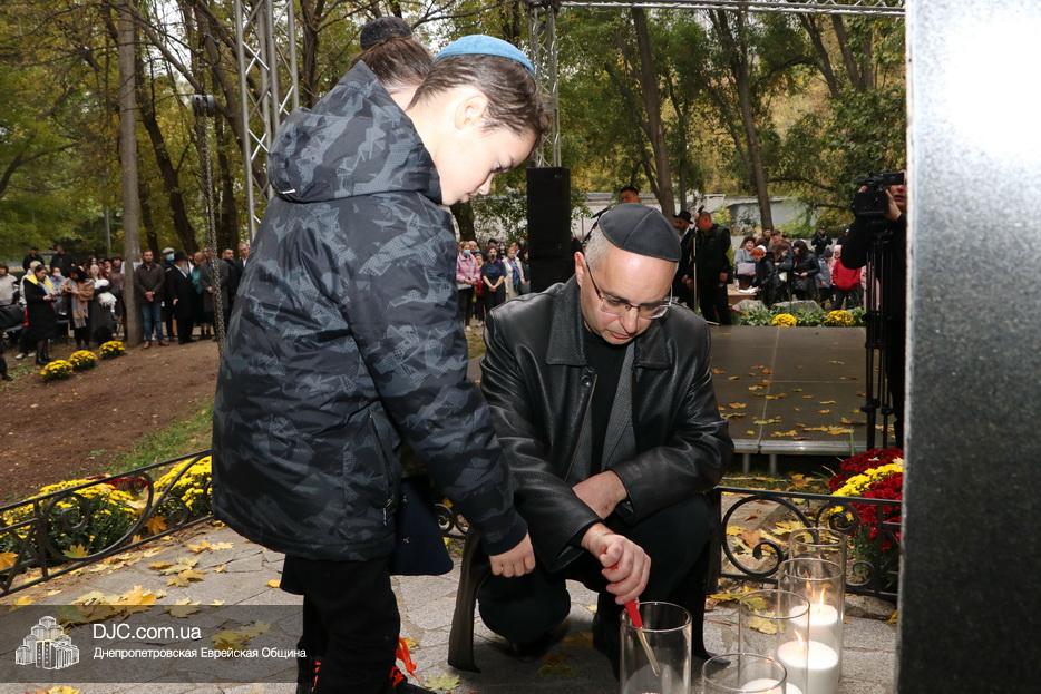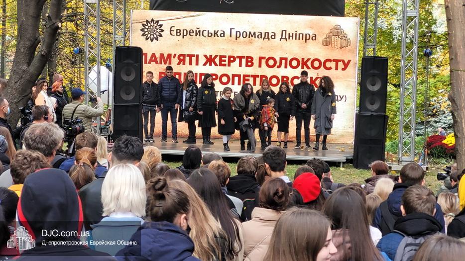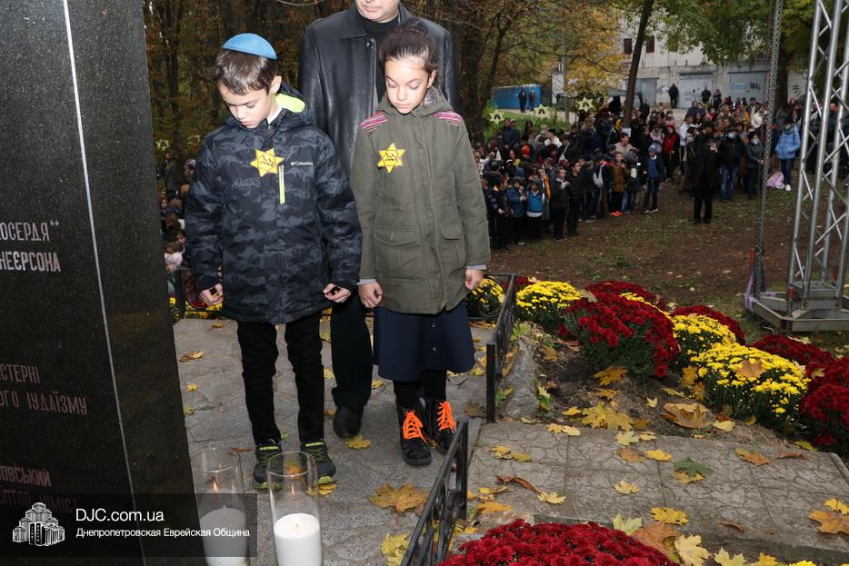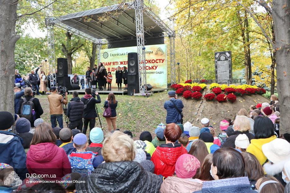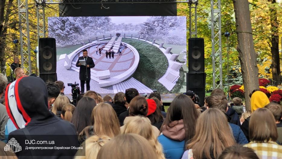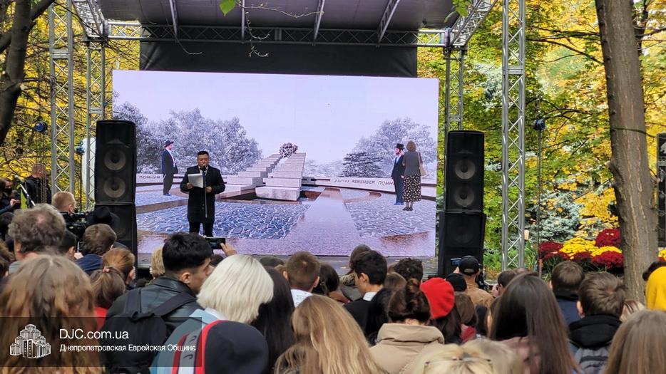 В ходе церемонии, эмоциональный фон которой создавали выступления учащихся еврейской школы Днепра «Ор Авнер Хабад Любавич» им. Леви-Ицхака Шнеерсона, был презентован проект «Меморіала пам’яті жертвам Голокосту», который по инициативе Еврейской общины Днепра и под научным руководством института «Ткума и музея «Память еврейского народа и Холокост в Украине» создал архитектор Александр Сорин и возглавляемое им архитектурное бюро «Студия7». Ведущий церемонии рассказал о символизме, пространственном решении и художественной концепции мемориала и сообщил, что Еврейская община объявила сбор средств на строительство мемориального комплекса, к которому могут присоединиться все неравнодушные люди и организации своими благотворительными взносами (сделать это можно здесь — https://djcdonation.com.ua/holocaust-memorial).