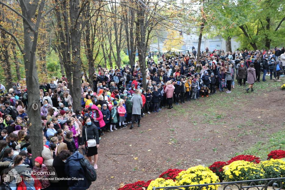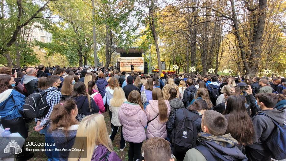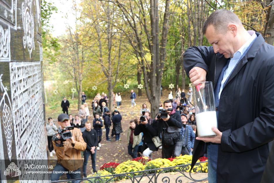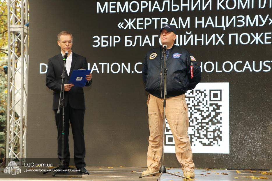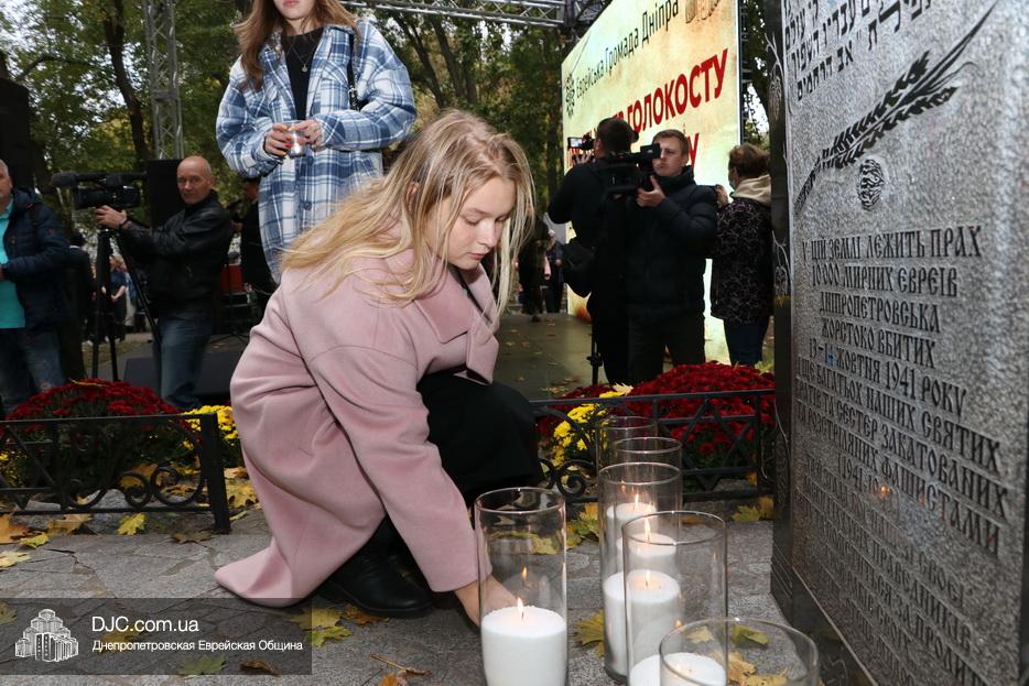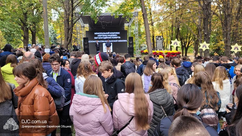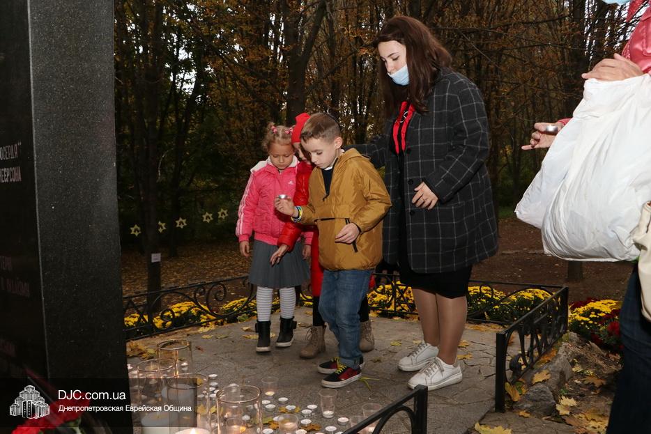 В ходе церемонии, эмоциональный фон которой создавали выступления учащихся еврейской школы Днепра «Ор Авнер Хабад Любавич» им. Леви-Ицхака Шнеерсона, был презентован проект «Меморіала пам’яті жертвам Голокосту», который по инициативе Еврейской общины Днепра и под научным руководством института «Ткума и музея «Память еврейского народа и Холокост в Украине» создал архитектор Александр Сорин и возглавляемое им архитектурное бюро «Студия7». Ведущий церемонии рассказал о символизме, пространственном решении и художественной концепции мемориала и сообщил, что Еврейская община объявила сбор средств на строительство мемориального комплекса, к которому могут присоединиться все неравнодушные люди и организации своими благотворительными взносами (сделать это можно здесь — https://djcdonation.com.ua/holocaust-memorial).