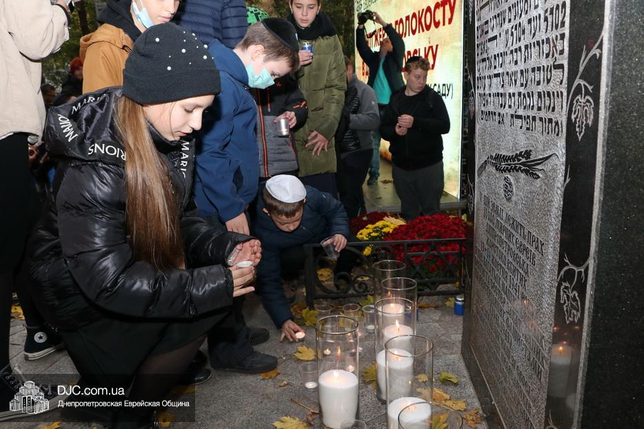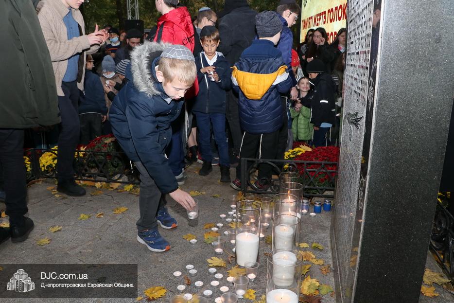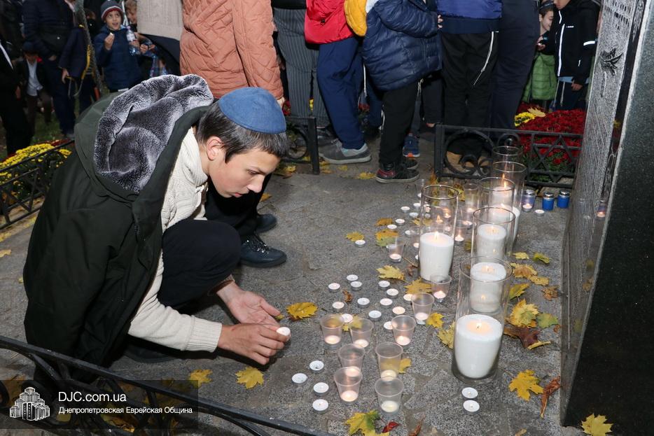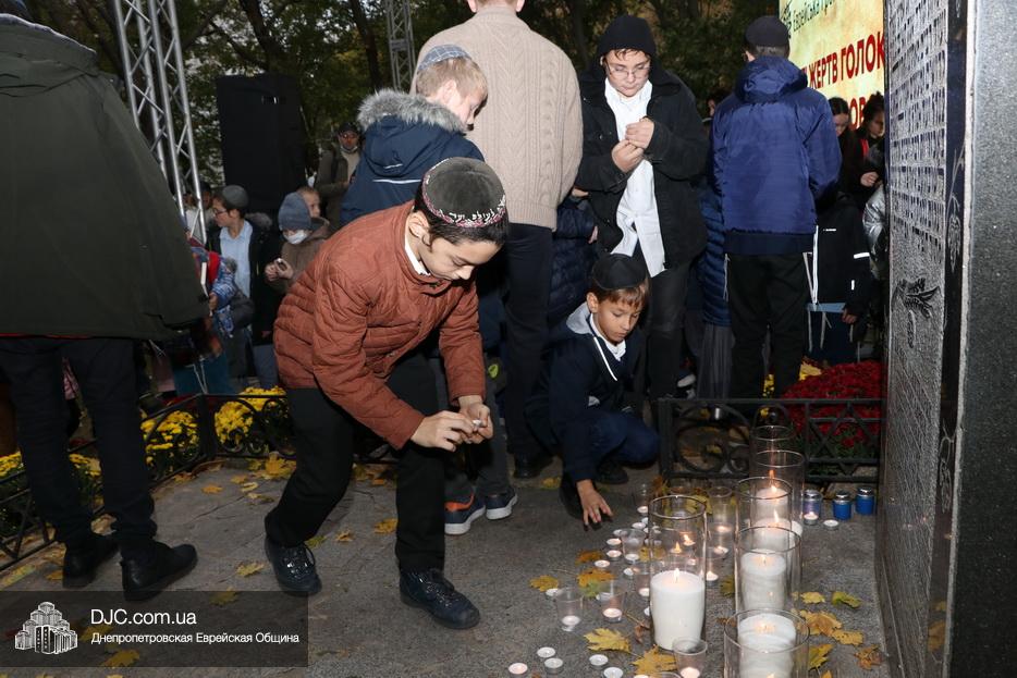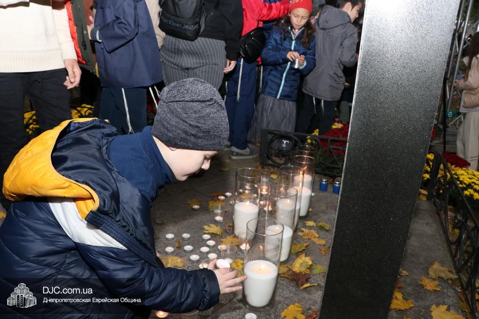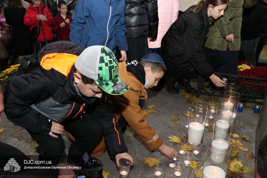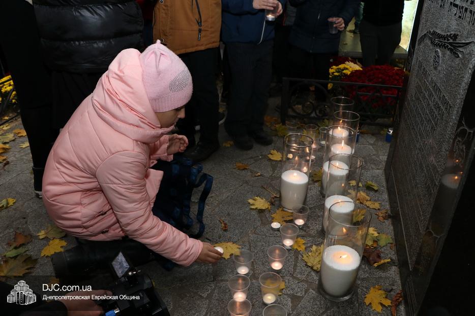 Завершением траурной церемонии стала поминальная молитва, которую произнес управляющий делами еврейской религиозной общины Александр Фридкис, минута молчания в память о безвинных жертвах и зажжение свечей памяти у мемориальной стелы учениками еврейской школы города, к которым присоединились многие из присутствующих.
