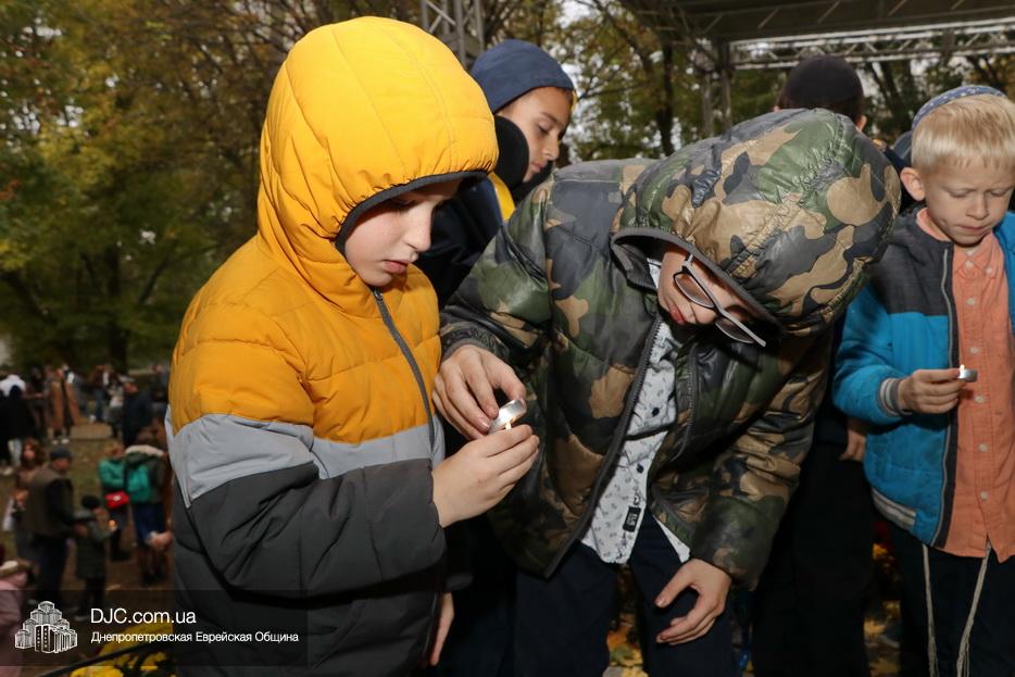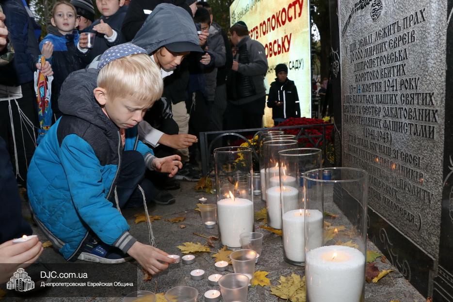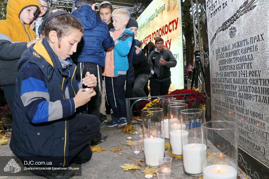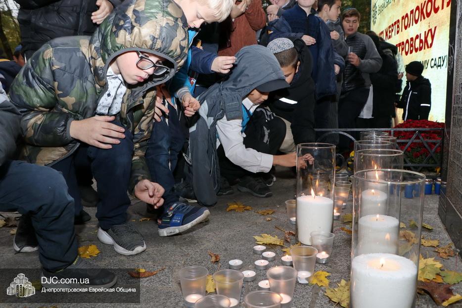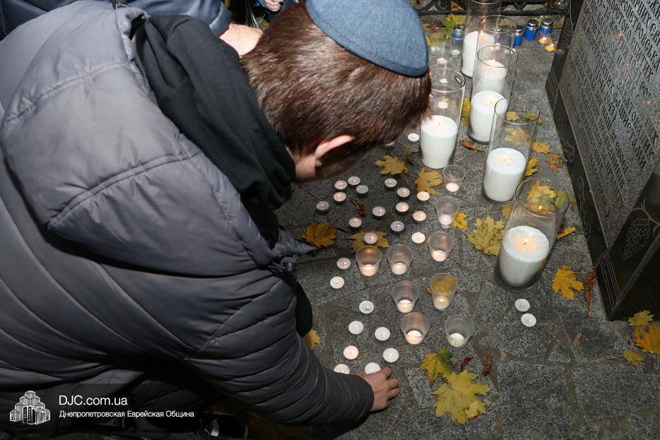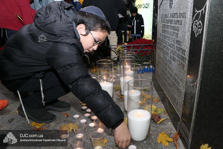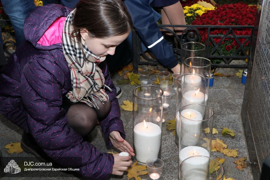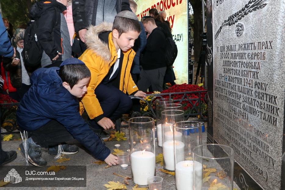 Завершением траурной церемонии стала поминальная молитва, которую произнес управляющий делами еврейской религиозной общины Александр Фридкис, минута молчания в память о безвинных жертвах и зажжение свечей памяти у мемориальной стелы учениками еврейской школы города, к которым присоединились многие из присутствующих.