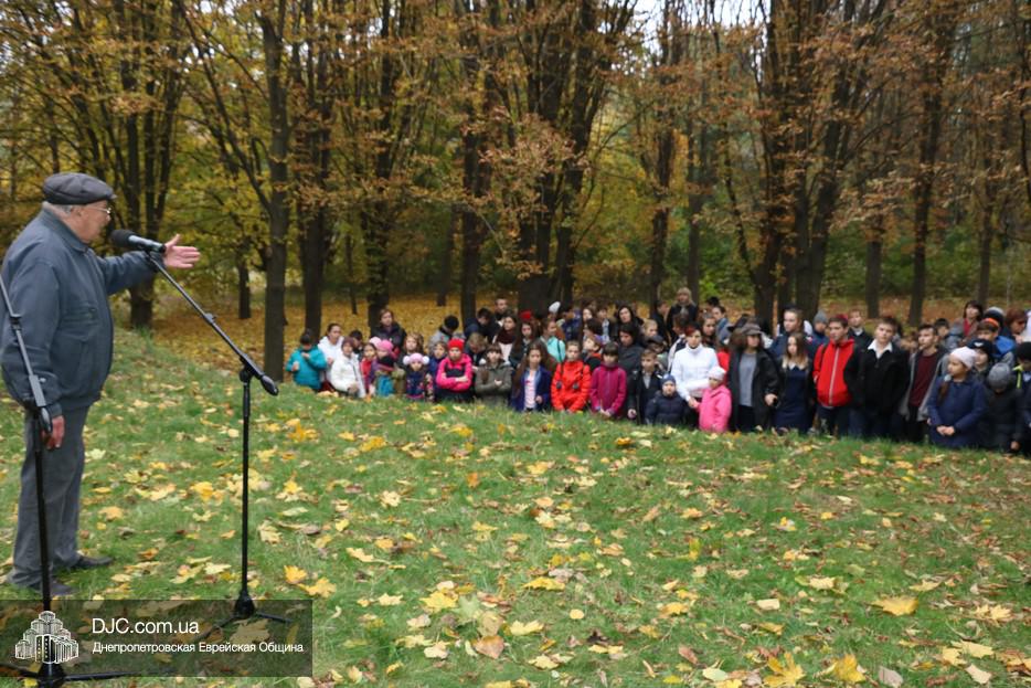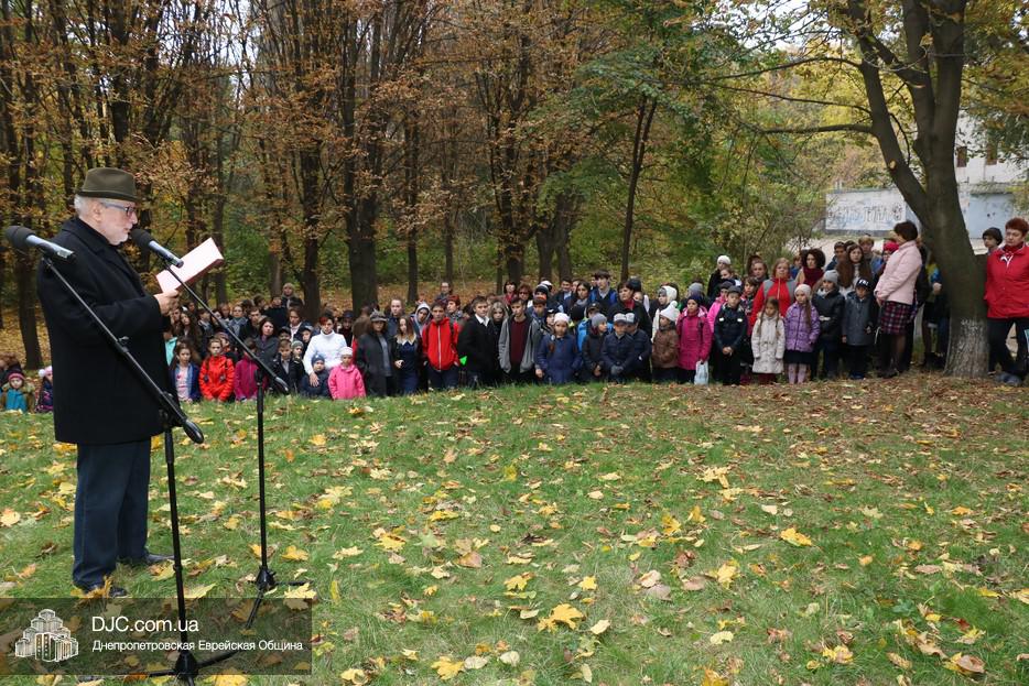 На мероприятии, посвященном 76-ой годовщине начала уничтожения еврейской общины в ходе так называемого «Холокоста от пуль», выступили лидеры и активисты еврейской общины и международных еврейских организаций. Поминальную молитву «Эль Моле Рахамим» прочитал управляющий делами религиозной общины Александр Фридкис, а председатель совета евреев-ветеранов Соломон Флакс призвал еврейские структуры и евреев, имеющих материальные возможности, приложить усилия, чтобы в мемориальном комплексе была не только цифра, но и имена безвинных жертв. Он отметил, что никакие другие нужды и расходы общины не могут оправдать того, что это важнейшая миссия памяти до сих пор не исполнена.