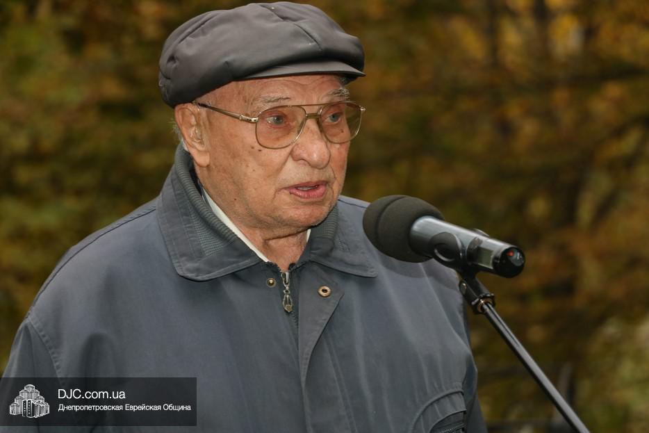 «Я боюсь умереть и не увидеть того, что здесь есть стелы с нанесенными на них именами людей, что сюда могут прийти люди и сказать – вот смотри сын, внук или правнук, вот имена наших родных. Каждый человек имеет право на имя, которое ему дали родители, и под которым он предстает перед Вс-вышним. Сейчас здесь статистика, а мы установили имена почти 50%, и до сих пор их здесь нет. Я понимаю, школы, садики, праздники, лагеря и развлечения – это очень важно, но кто заступится за этих людей, кто вернет им человеческое право иметь свое имя над своей могилой. Сколько Вс-вышний мне отпустил времени – я до последнего дня буду призывать – завершите мемориальный комплекс, поставьте стелы и увековечьте память, чтобы имена людей были здесь написаны как это положено», – сказал Соломон Киселевич Флакс.