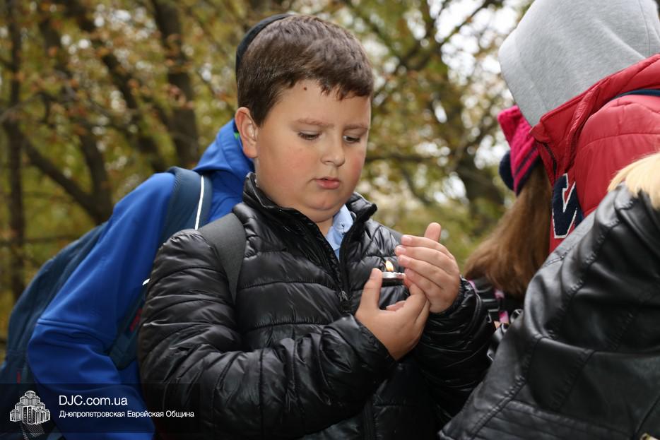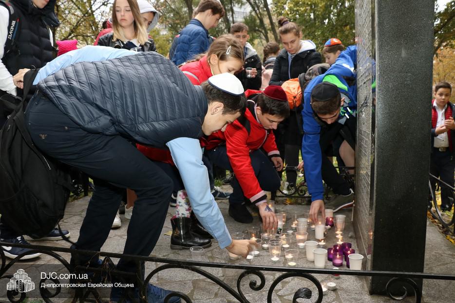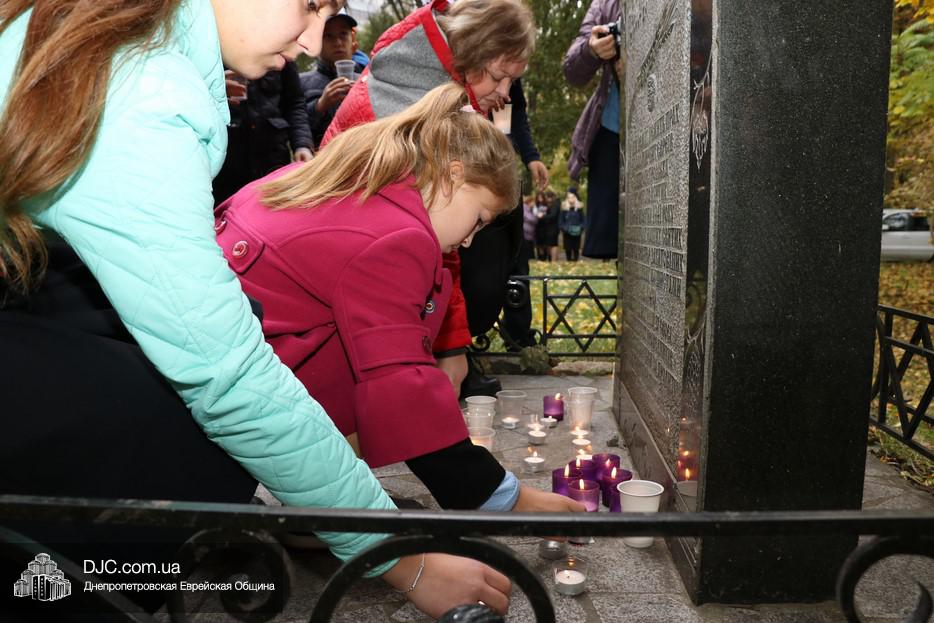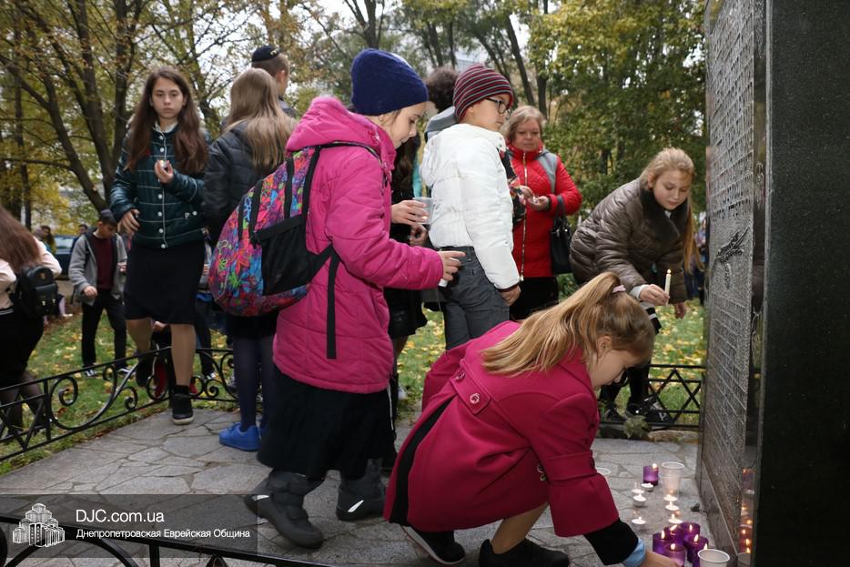 В завершение митинга школьники зажгли свечи памяти и установили их у подножия памятной стелы, свидетельствующей о том, что на этом месте в октябре 1941 года нацисты уничтожили свыше 10 000 тысяч евреев нашего города.