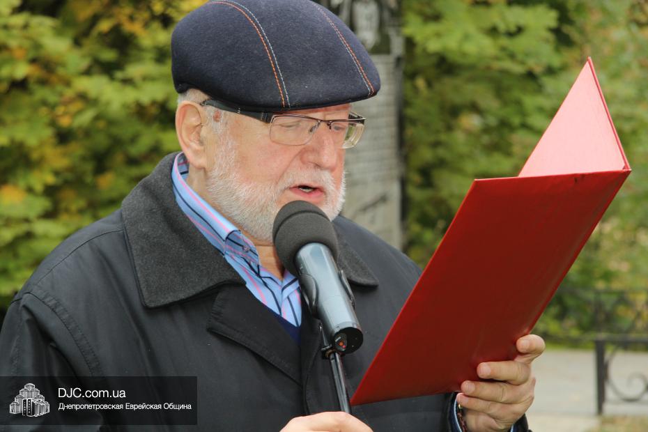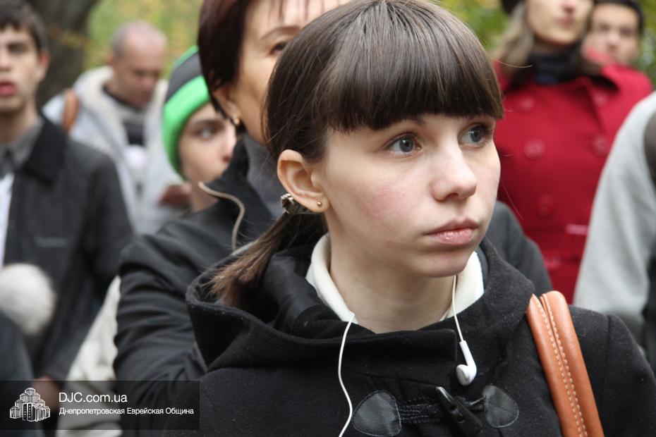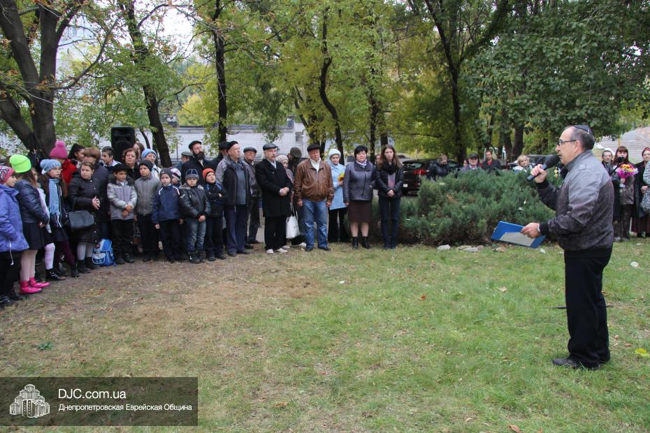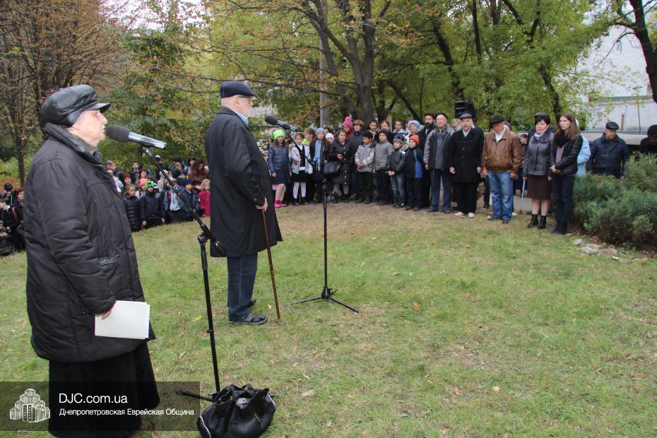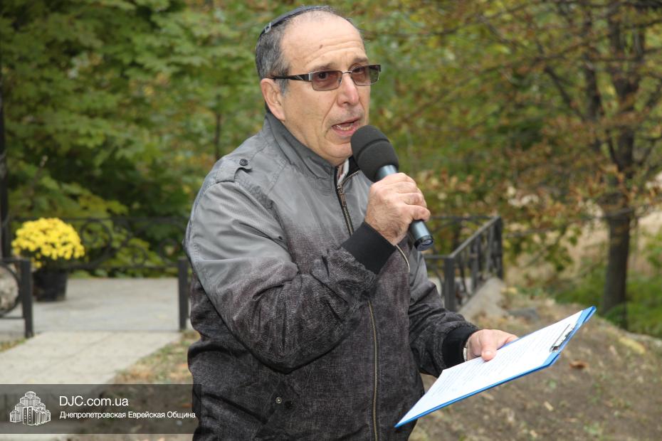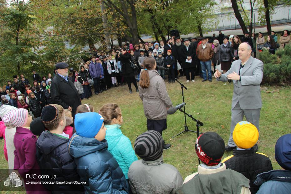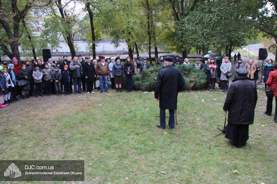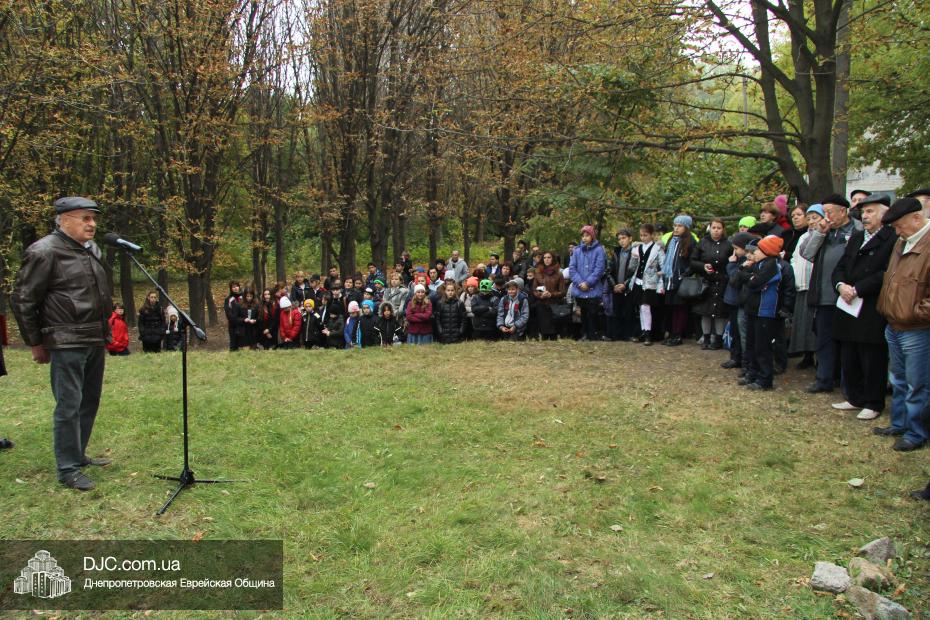 Митинг открылся исполнением государственных гимнов Украины и Израиля и молитвой за мир и прекращение кровопролития в этих странах. В этом году митинг вели совместно Алла Гельберг, заслуженный учитель, ветеран педагогического труда, много лет преподававшая историю в еврейской школе нашего города, и управляющий делами Днепропетровской общины Александр Фридкис, который напомнил собравшимся, что траурные церемонии в память 11-ти тысяч жертв массовых расстрелов евреев в днепропетровском Ботаническом саду, невзирая на запреты и преследования советского режима, стали проводиться благодаря пионерам еврейского возрождения Авигдору Рабкину, Боруху Цейтлину и Виктору Гукину. Затем эта традиция была продолжена лидерами нашей общины Григорием Натановичем Королем и Аркадием Леонидовичем Шмистом (да будет благословенна их память). С тех пор ежегодно, почти тридцать лет, евреи Днепропетровска проводят масштабные траурные мероприятия на месте, где были безвинно уничтожены их предки в 1941 году.