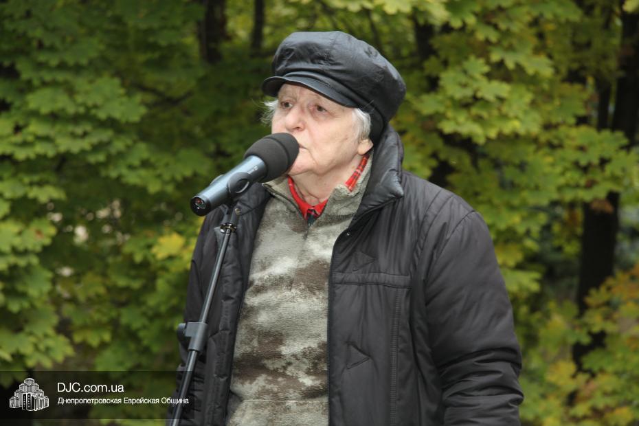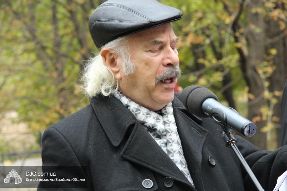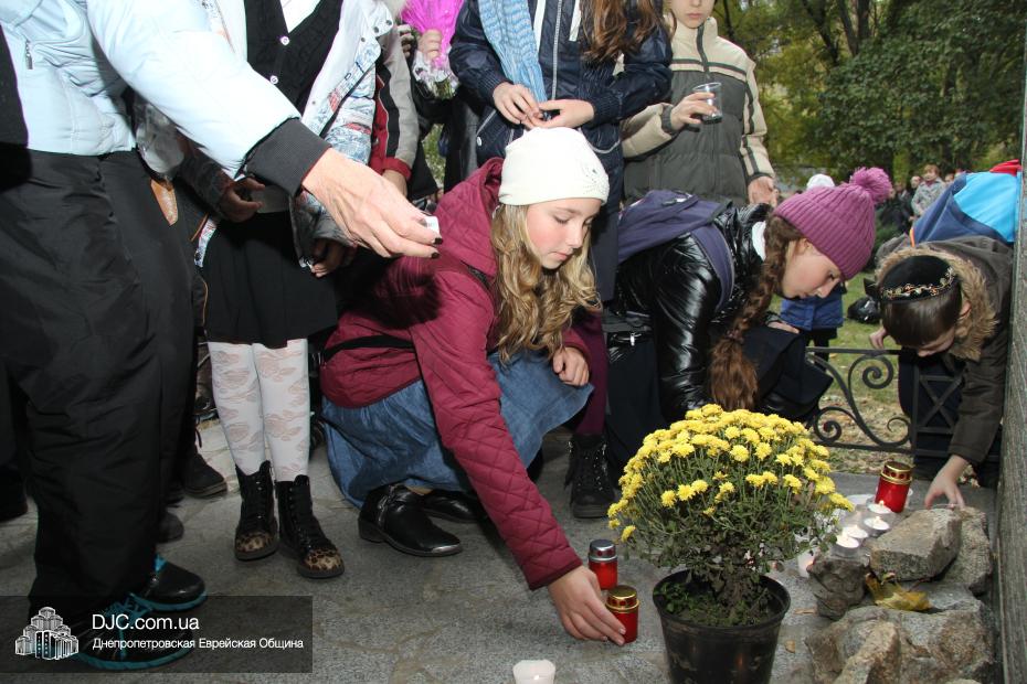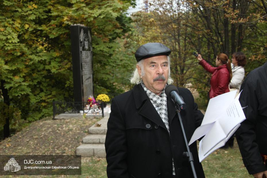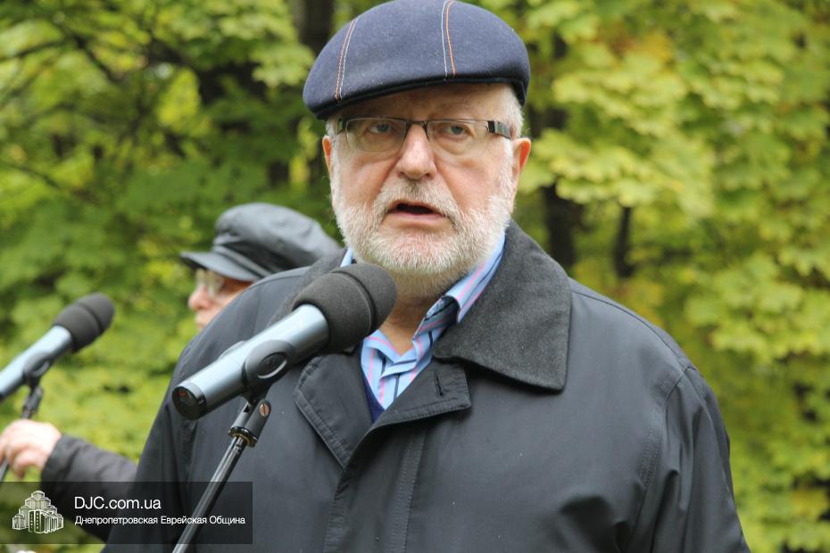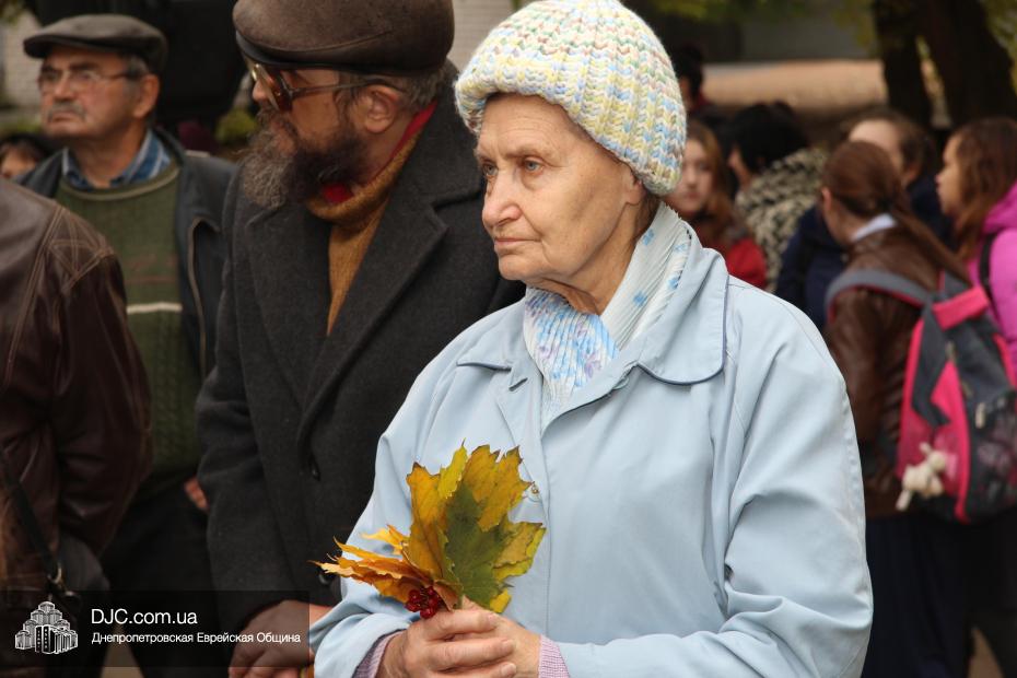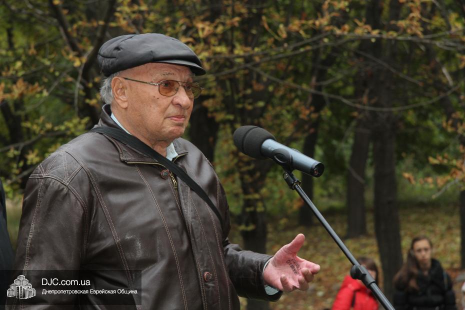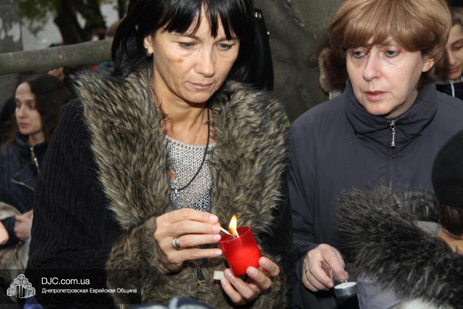 Митинг открылся исполнением государственных гимнов Украины и Израиля и молитвой за мир и прекращение кровопролития в этих странах. В этом году митинг вели совместно Алла Гельберг, заслуженный учитель, ветеран педагогического труда, много лет преподававшая историю в еврейской школе нашего города, и управляющий делами Днепропетровской общины Александр Фридкис, который напомнил собравшимся, что траурные церемонии в память 11-ти тысяч жертв массовых расстрелов евреев в днепропетровском Ботаническом саду, невзирая на запреты и преследования советского режима, стали проводиться благодаря пионерам еврейского возрождения Авигдору Рабкину, Боруху Цейтлину и Виктору Гукину. Затем эта традиция была продолжена лидерами нашей общины Григорием Натановичем Королем и Аркадием Леонидовичем Шмистом (да будет благословенна их память). С тех пор ежегодно, почти тридцать лет, евреи Днепропетровска проводят масштабные траурные мероприятия на месте, где были безвинно уничтожены их предки в 1941 году.