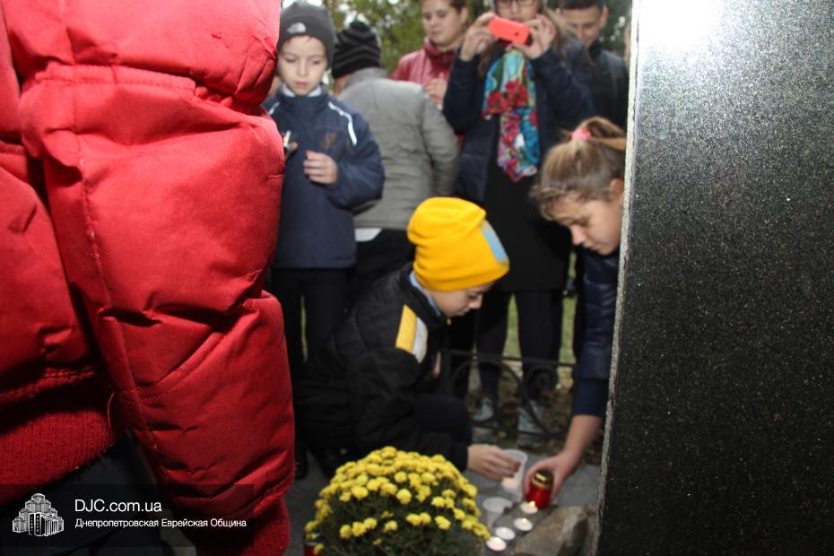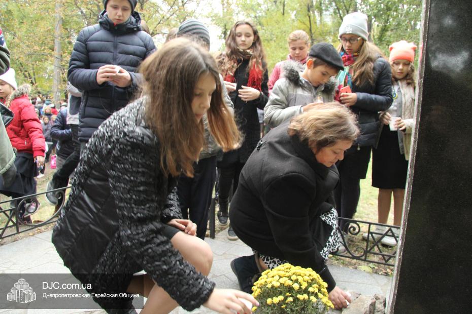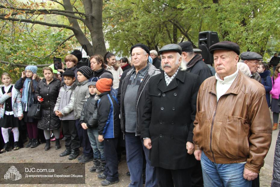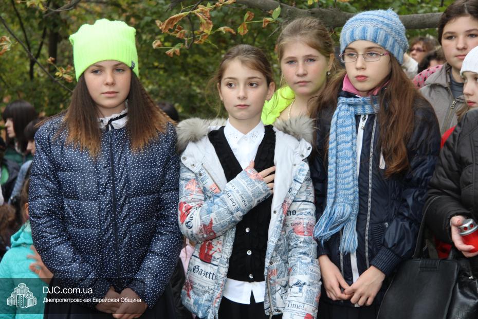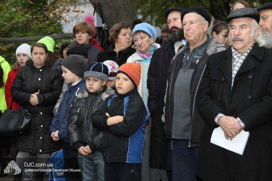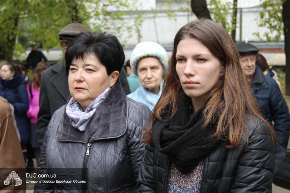 На траурном митинге присутствовали прихожане еврейской общины, ветераны войны, ученики еврейской школы Днепропетровска «Ор Авнер Хабад-Любавич» имени Леви-Ицхака Шнеерсона, воспитанницы махона «Бейс Хая-Мушка», студентки Международного гуманитарно-педагогического института «Бейт Хана» и жители города.