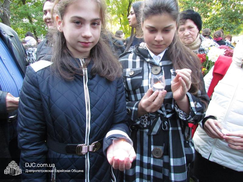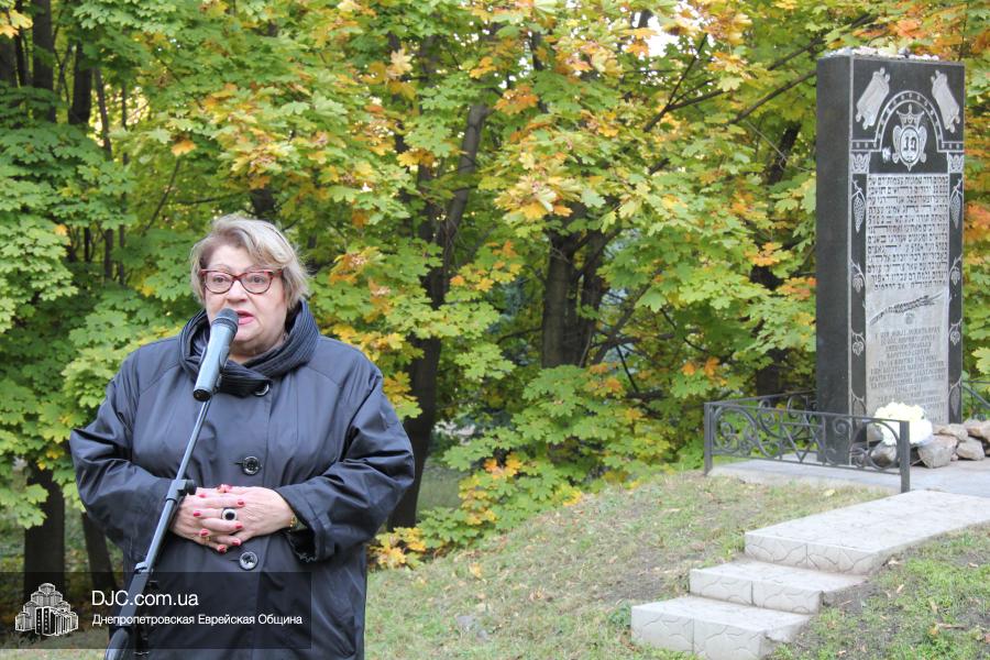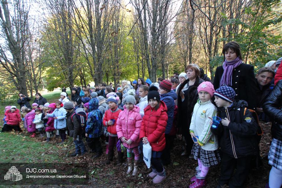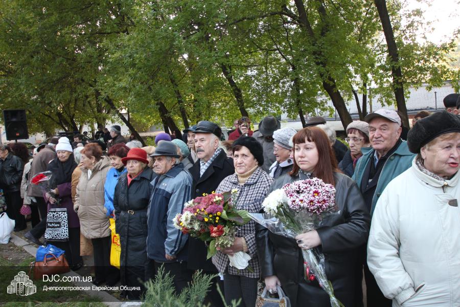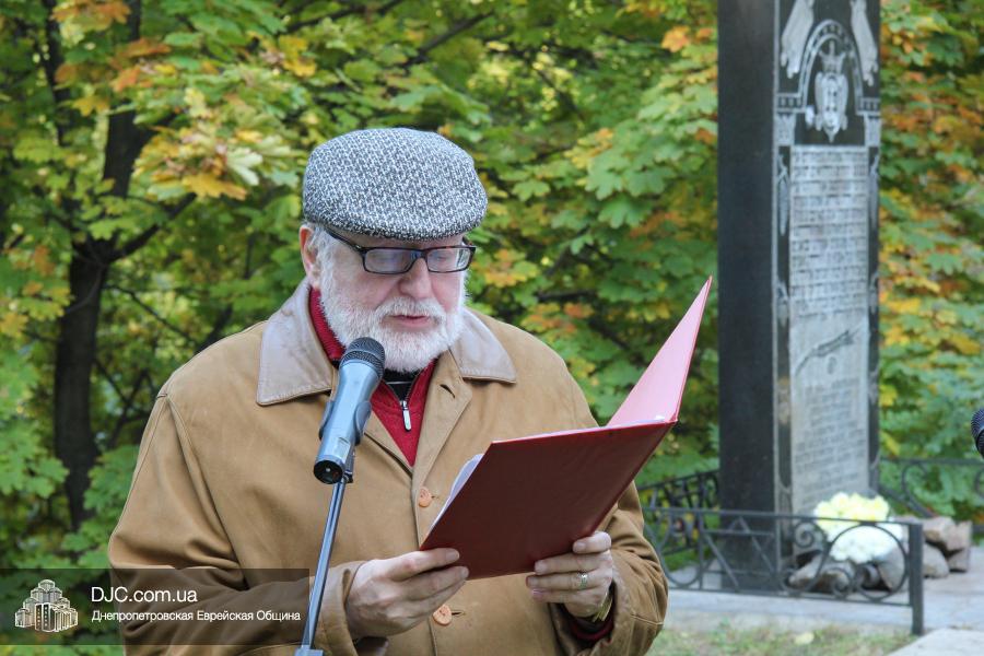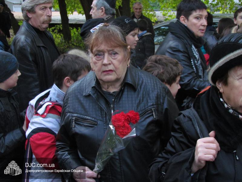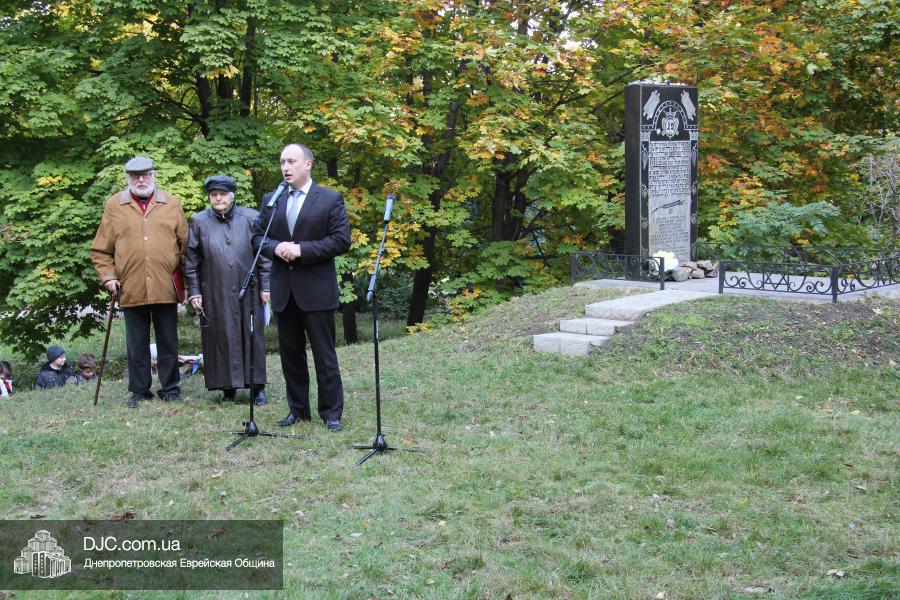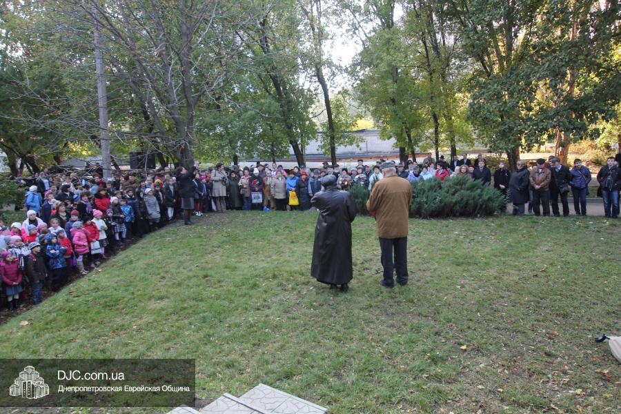 Ведущей траурной церемонии традиционно была Алла Григорьевна Гельберг, много лет преподававшая историю в еврейской школе нашего города. Вступительное слово было предоставлено управляющему делами днепропетровской общины Александру Фридкису. Он напомнил собравшимся, что траурные церемонии в память 11-ти тысяч жертв массовых расстрелов евреев в днепропетровском Ботаническом саду, невзирая на запреты и преследования советского режима, стали проводиться благодаря пионерам еврейского возрождения Авигдору Рабкину, Боруху Цейтлину и Виктору Гукину. Затем эта традиция была продолжена лидерами нашей общины Григорием Натановичем Королем и Аркадием Леонидовичем Шмистом (да будет благословенна их память). С тех пор ежегодно, более двадцати лет, евреи Днепропетровска проводят масштабные траурные мероприятия на месте, где были безвинно уничтожены их предки в 1941 году.