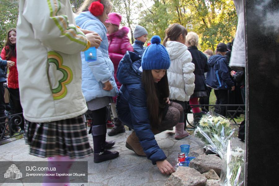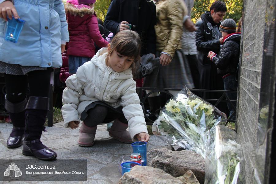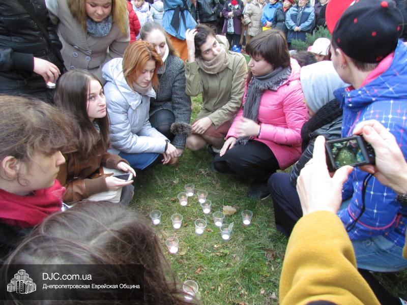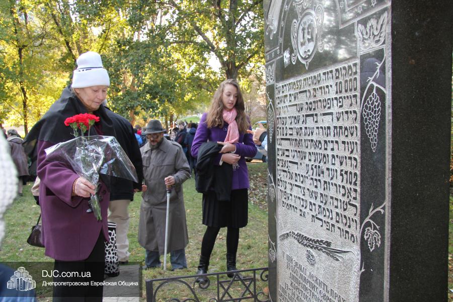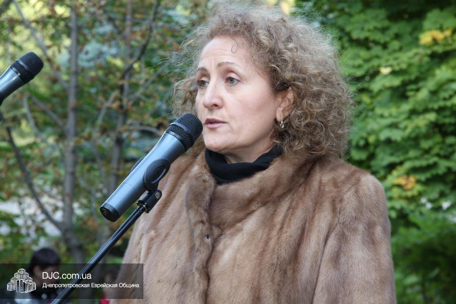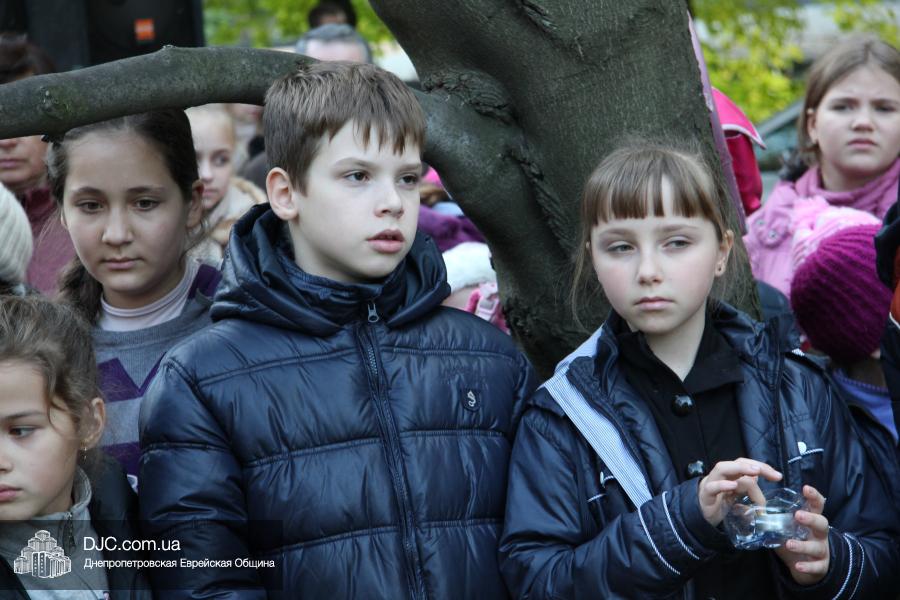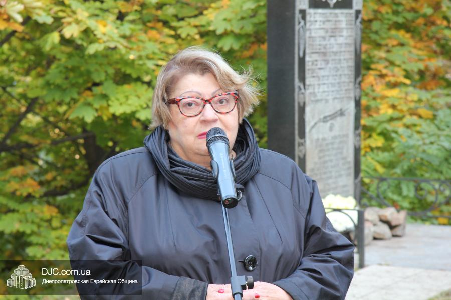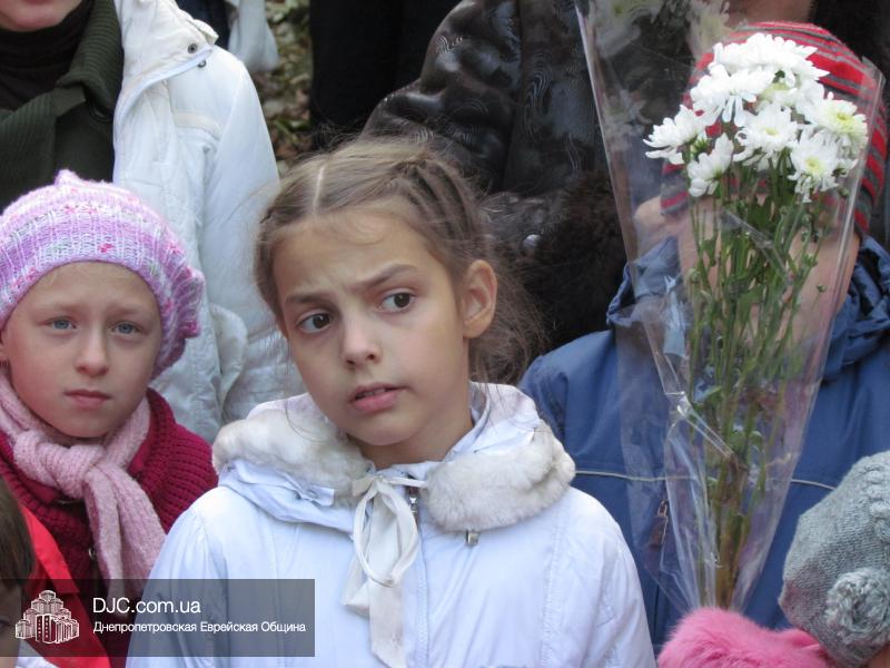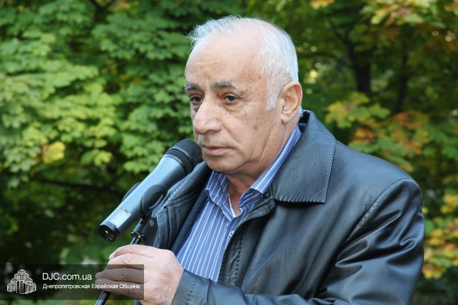 Ведущей траурной церемонии традиционно была Алла Григорьевна Гельберг, много лет преподававшая историю в еврейской школе нашего города. Вступительное слово было предоставлено управляющему делами днепропетровской общины Александру Фридкису. Он напомнил собравшимся, что траурные церемонии в память 11-ти тысяч жертв массовых расстрелов евреев в днепропетровском Ботаническом саду, невзирая на запреты и преследования советского режима, стали проводиться благодаря пионерам еврейского возрождения Авигдору Рабкину, Боруху Цейтлину и Виктору Гукину. Затем эта традиция была продолжена лидерами нашей общины Григорием Натановичем Королем и Аркадием Леонидовичем Шмистом (да будет благословенна их память). С тех пор ежегодно, более двадцати лет, евреи Днепропетровска проводят масштабные траурные мероприятия на месте, где были безвинно уничтожены их предки в 1941 году.