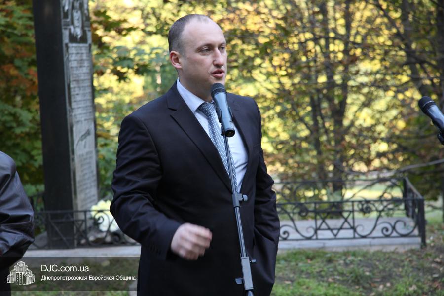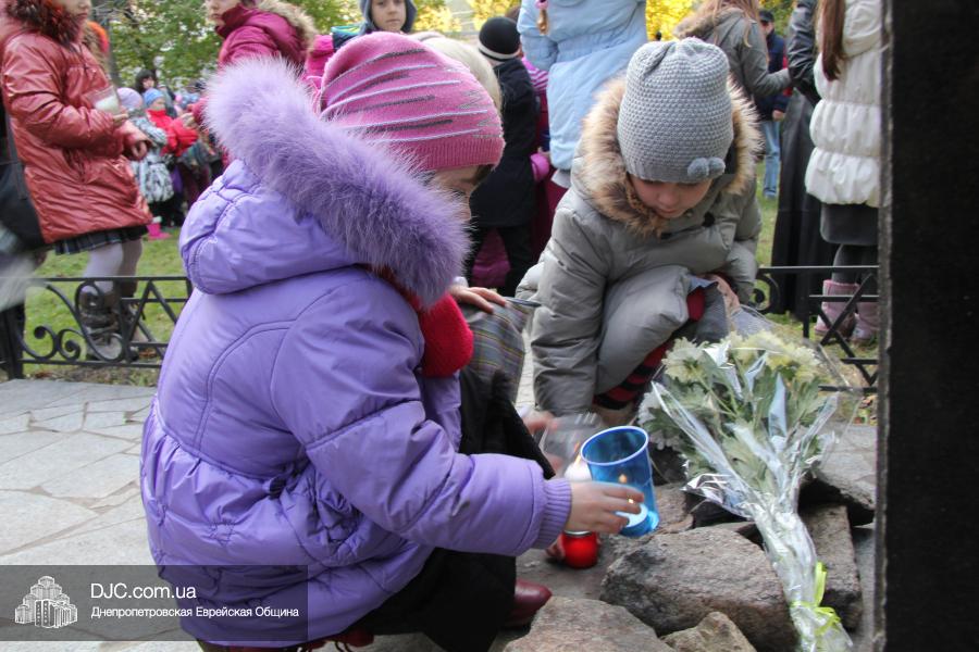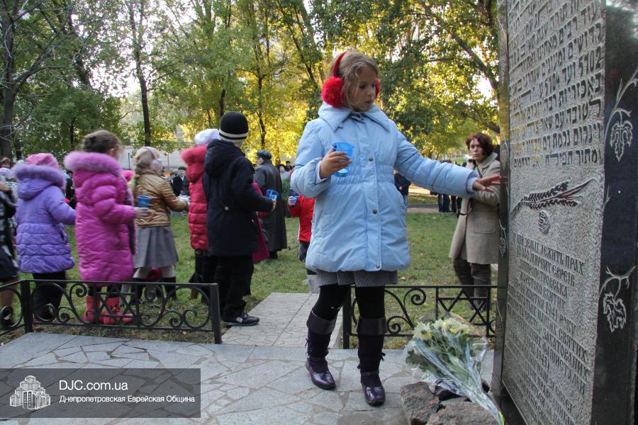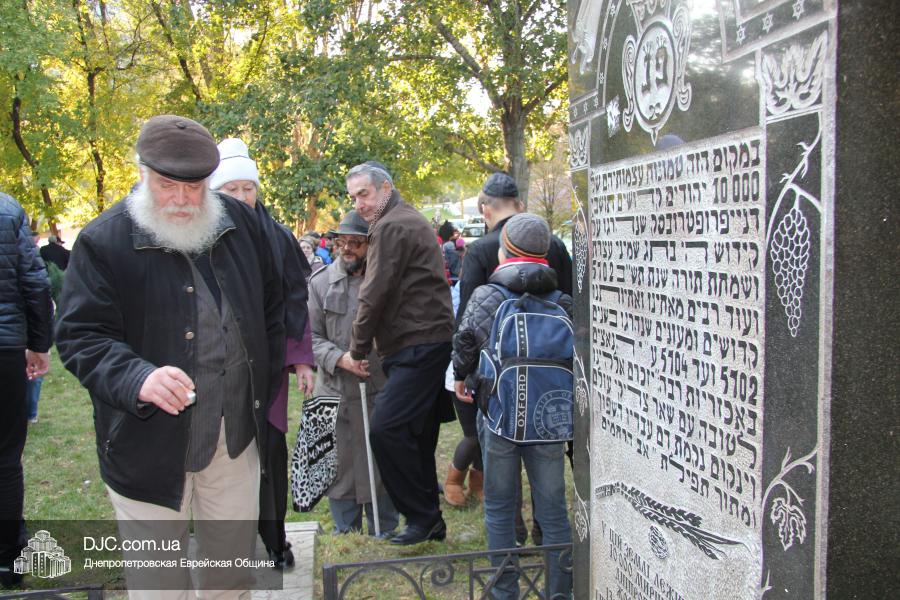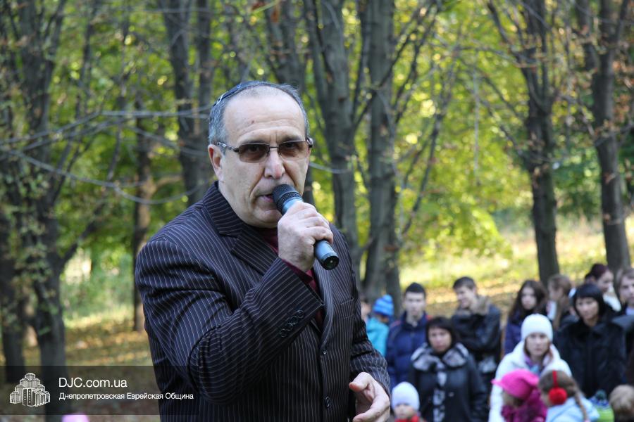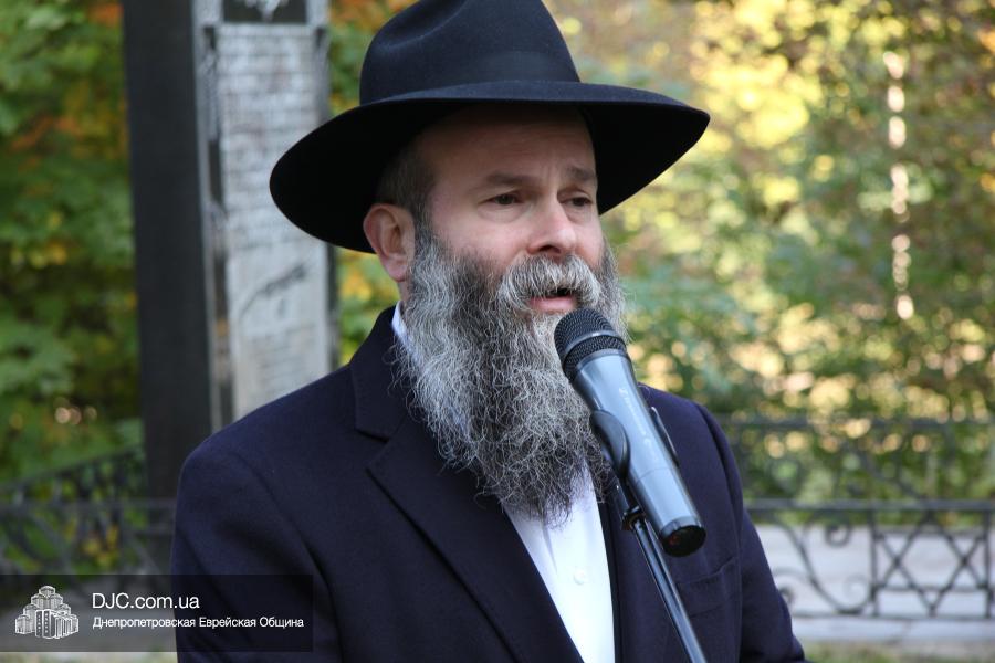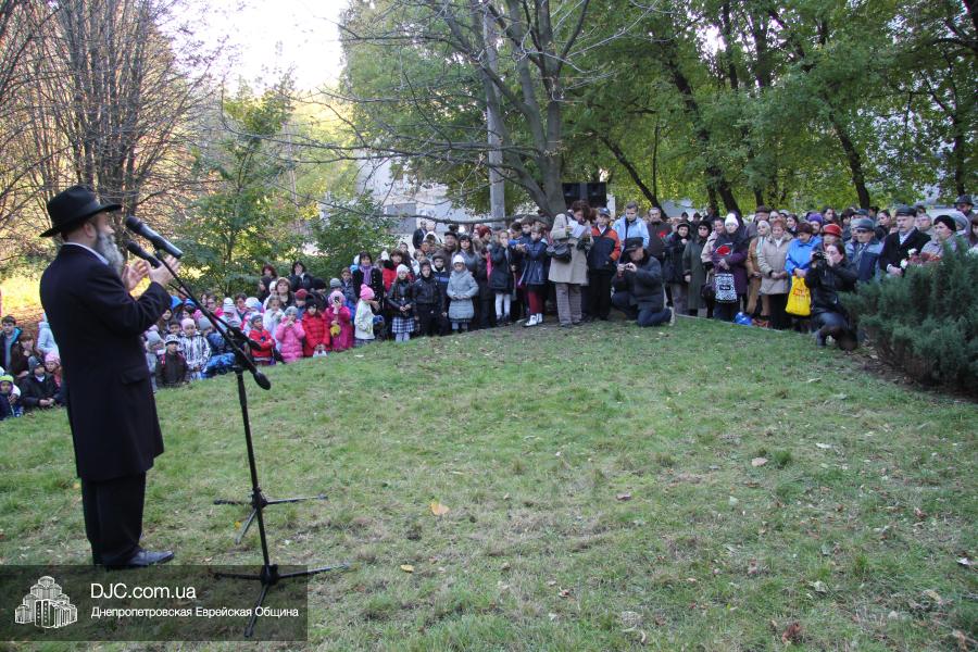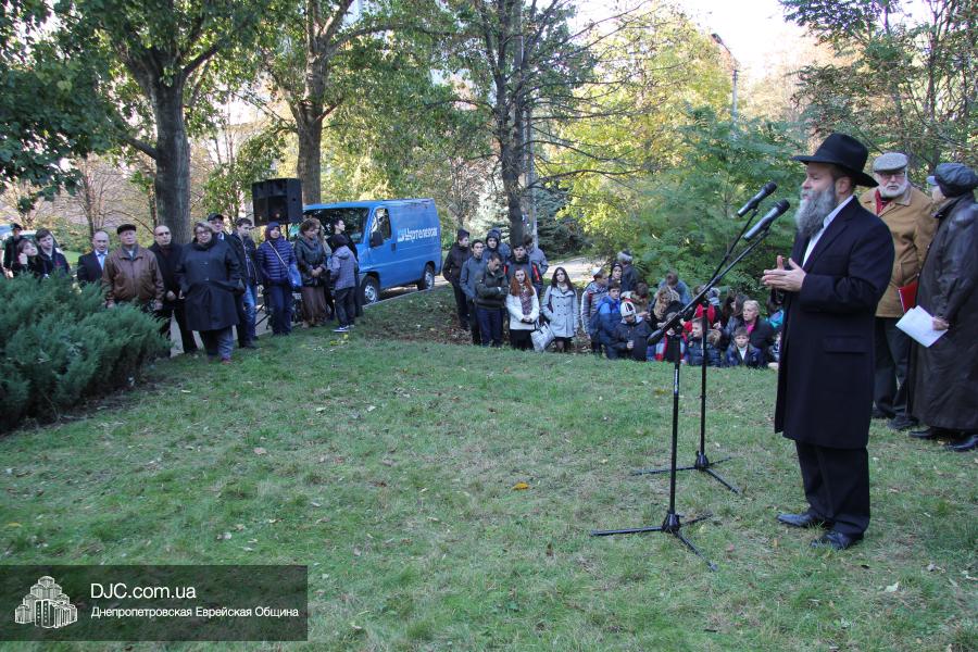 Далее слово было предоставлено Главному раввину Днепропетровска и Днепропетровской области Шмуэлю Каминецкому. «Мы каждый год собираемся, помня о том, что произошло в 1941 году, в самый радостный праздник Симхат Тора, — отметил раввин Каминецкий. — Сегодня мы понимаем, что мы, слава Б-гу, живем в такое время, когда подобное больше не может повториться. Наш еврейский ответ сегодня на те события — мы должны усилить веру во Вс-вышнего, сохраняя традиции еврейского народа. Это очень важно здесь, в Украине, ведь это — единственная страна, где был Холокост, но где сейчас процветает еврейство, страна, в которой живет одна из самых больших еврейских общин, пятая по величине в мире. За это мы благодарим Вс-вышнего и руководство Украины».