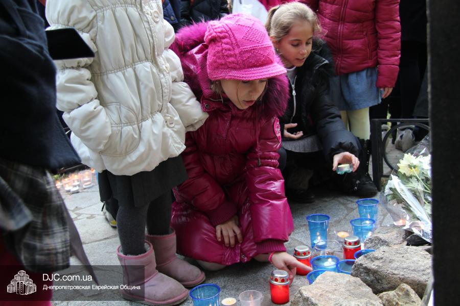 На траурном митинге присутствовали прихожане еврейской общины, ветераны войны, ученики еврейской школы Днепропетровска «Ор Авнер Хабад-Любавич» имени Леви-Ицхака Шнеерсона, воспитанницы махона «Бейс Хая-Мушка», студентки Международного гуманитарно-педагогического института «Бейт Хана», а также представители еврейских структур, работающих в нашем городе, Общественного Совета при губернаторе Днепропетровщины, лидеры польской, армянской и азербайджанских общин Днепропетровска и международной общественной организации «Институт Украиника».
