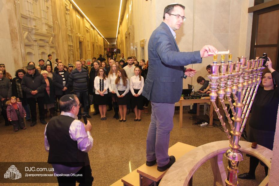 В крупнейшем в мире еврейском центре «Менора» состоялась церемония зажжения третьей Ханукальной свечи. Честь зажечь огни на главной Ханукие Центра была предоставлена главе харьковского филиала «Сохнут-Украина» господину Максиму Лурье.