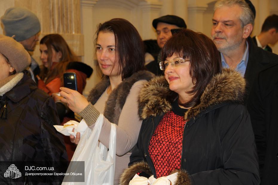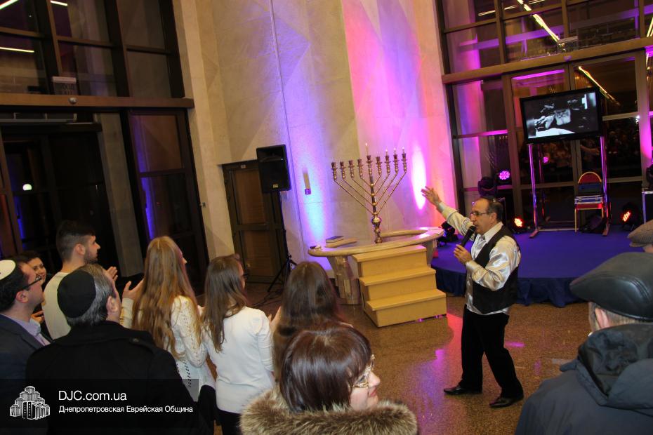 Предваряя начало церемонии зажжения, госпожа Натали Набитовски, руководитель днепропетровского филиала «Сохнут-Украина», тепло поздравила всех собравшихся в Галерее центра с праздником света, огней и радости. «Я хочу поздравить вас с нашим светлым, красивым и очень вкусным праздником – праздником Ханука, – обратилась госпожа Набитовски ко всем пришедшим в этот день в «Менору», дабы увидеть чудесное зажжение ханукального светильника в третий день Хануки, – будьте здоровы, лучезарны, и теплы, будьте такими же, как этот праздник, который мы сейчас отмечаем».