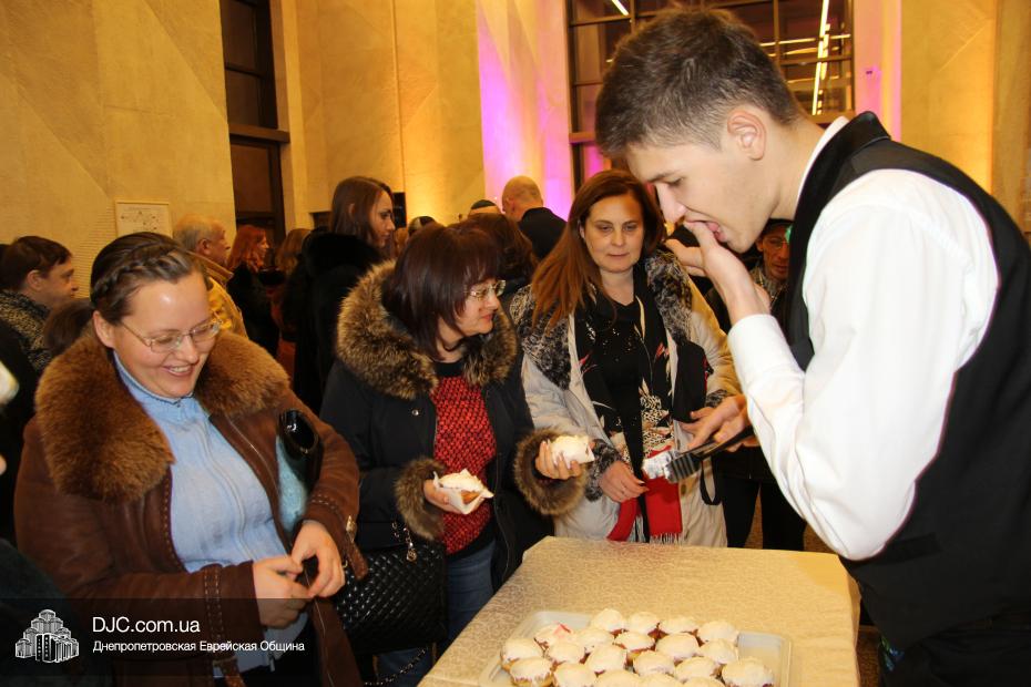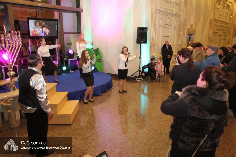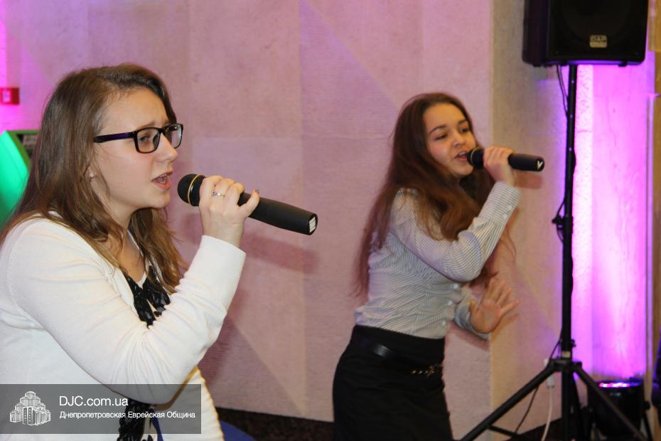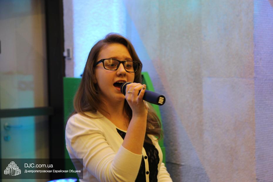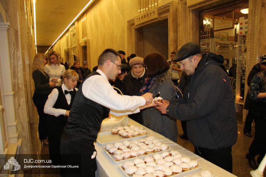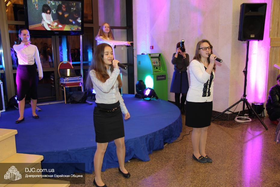 Затем все получили возможность угоститься пончиками, приготовленными рестораном центра «Менора», а известный шоумен и певец Яков Роговой пригласил на сцену участниц молодежного клуба ЕА «Сохнут-Украина» – Яну Когун, Дарью Новикову, Валерию Милютину и Ирину Волошину, подготовивших к своему выступлению песенное попурри на тему Хануки.