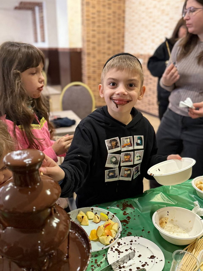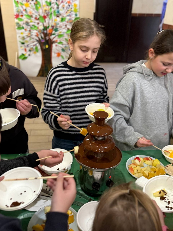 Праздничную атмосферу дополнило угощение – при поддержке заботливых мам детей ждал сладкий сюрприз: фрукты в шоколаде. Радость, смех и счастливые лица стали лучшим подтверждением тому, что встреча удалась.