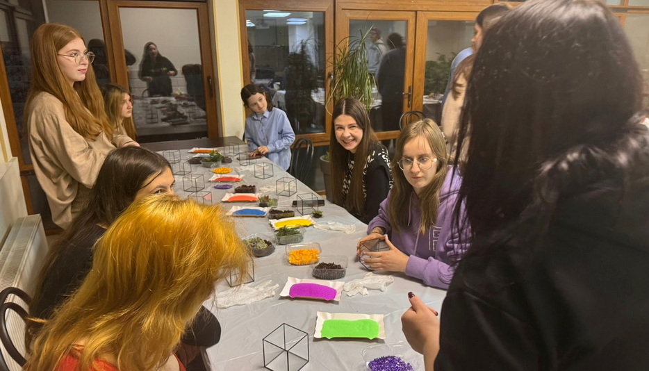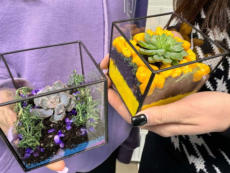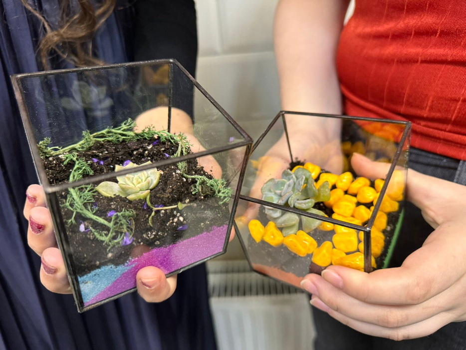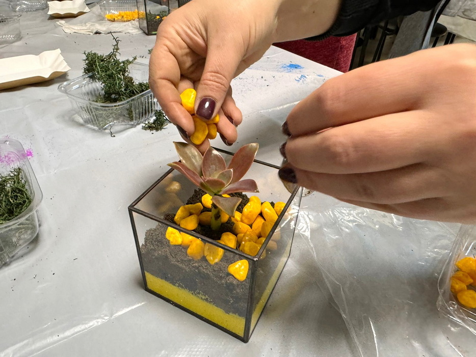 Преподаватели «Бейт Ханы» подготовили для студенток урок в формате фарбренгена, на котором Лея Лазарева рассказала о празднике Ту Би Шват. И чтобы соблюсти традицию посадки растений, девушек ожидал мастер-класс по созданию флорариума, на котором они садили в красиво оформленные емкости суккуленты. Студентки получили эстетическое удовольствие, оформляя каждая свой неповторимый флорариум.