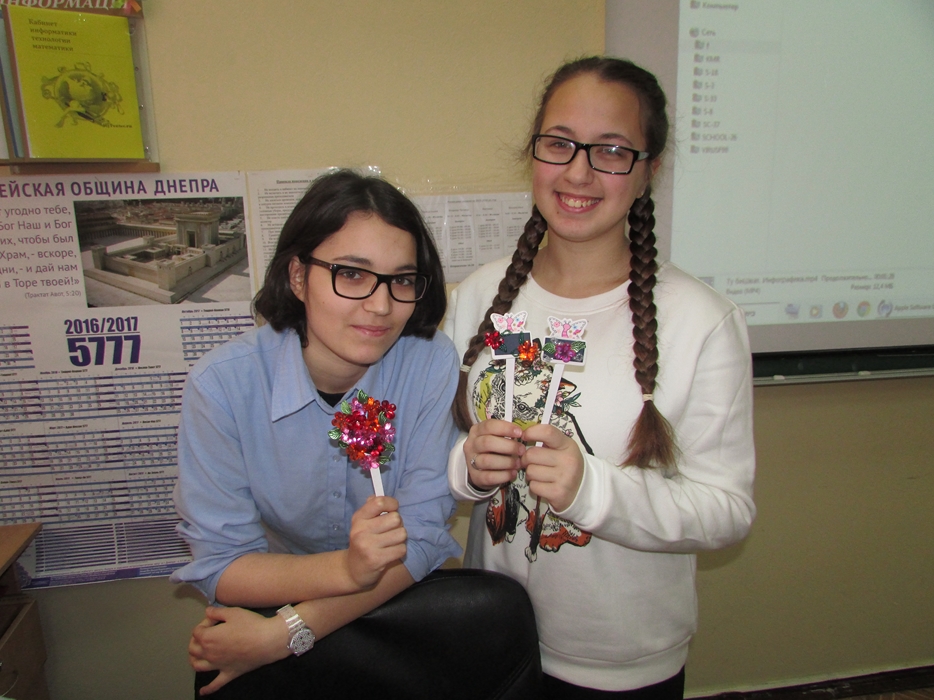 Ученицы 9-11 классов собрались в кабинете информатики, чтобы посмотреть видео Ребе, а также видео о традициях и обычаях праздника Ту Би Шват, а затем сделали красивую и интересную поделку – символ цветущего дерева, которой можно украсить праздничный стол».