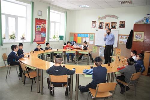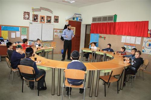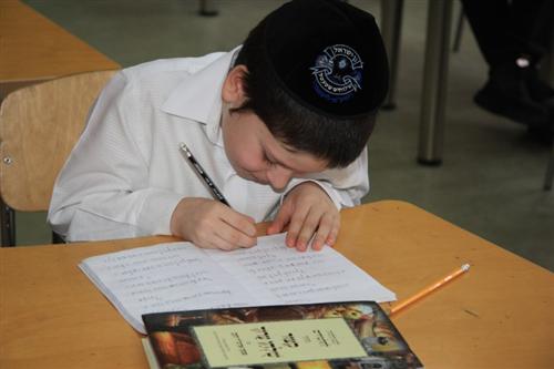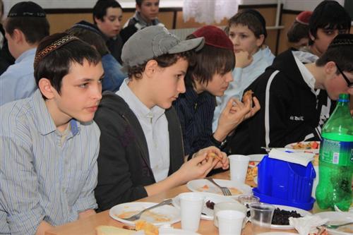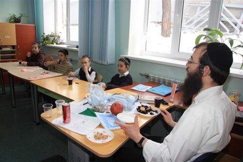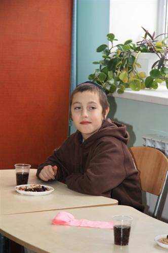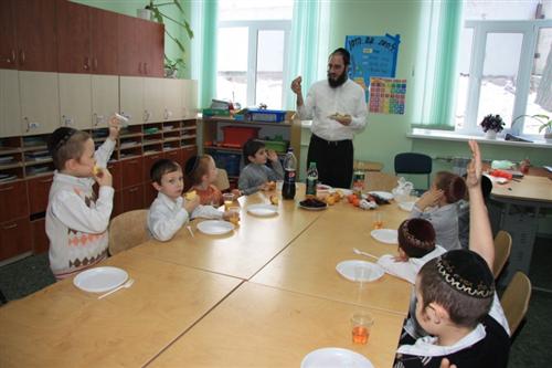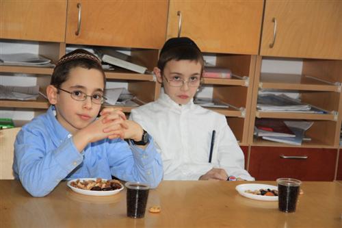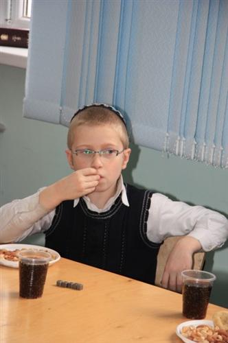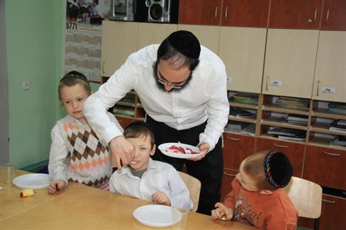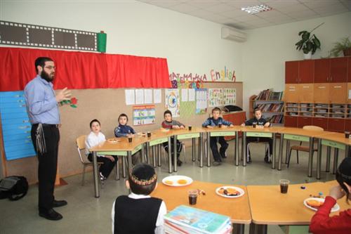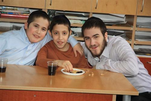 Для учеников младшей ступени иешивы сначала была проведена специальная контрольная работа на знания традиций и обычаев праздника, а затем руководитель группы раввин Хаим Бурген пригласил всех малышей на праздничный фарбренген.