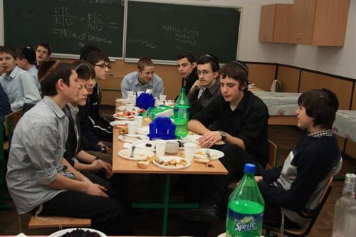 В старшей группе иешивы-ктана большой праздничный фарбренген был организован в столовой в истинно хасидском духе с участием ведущих преподавателей, которые порадовали ребят увлекательными и волшебными историями, сипурами и майсами.