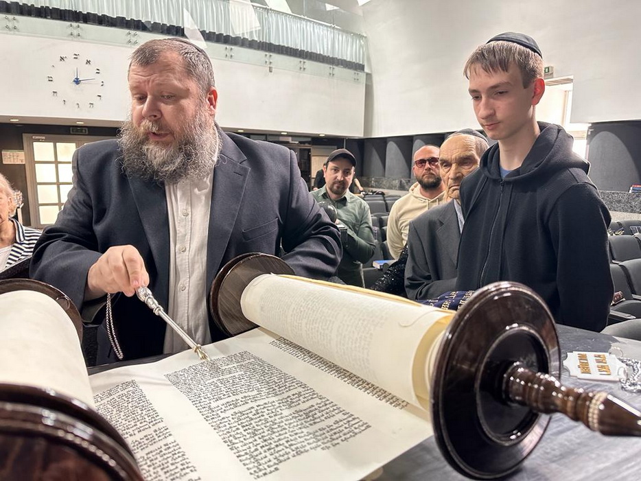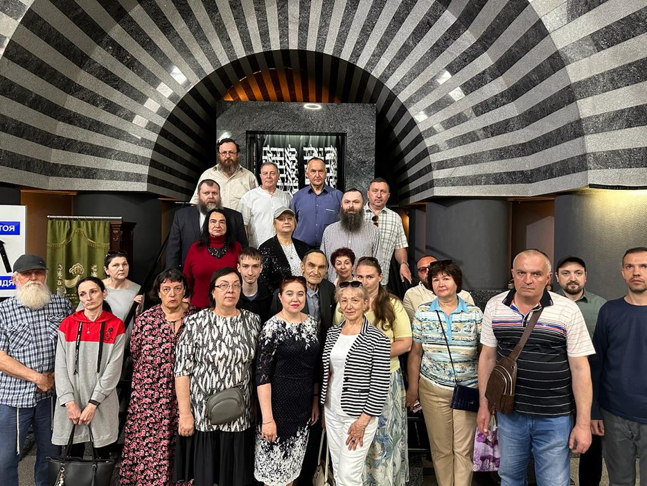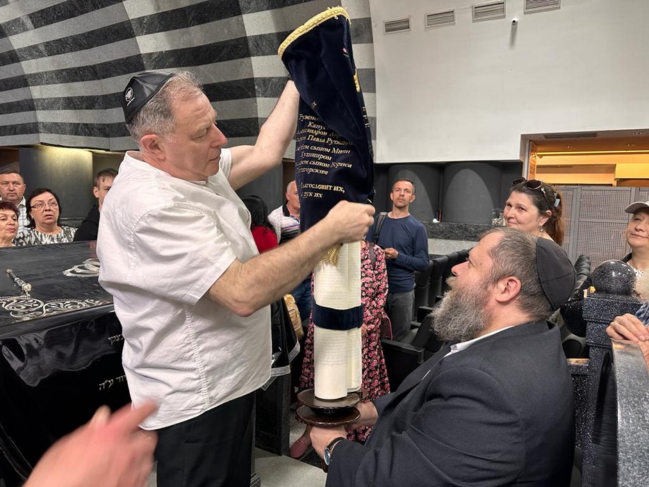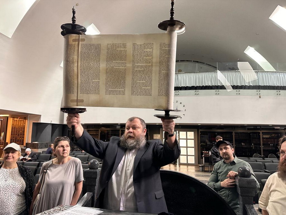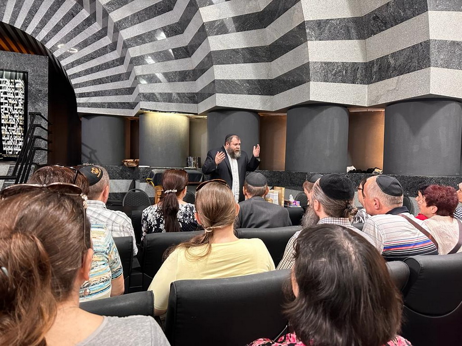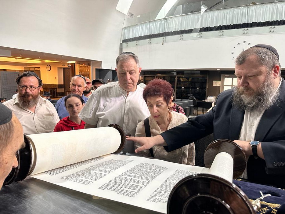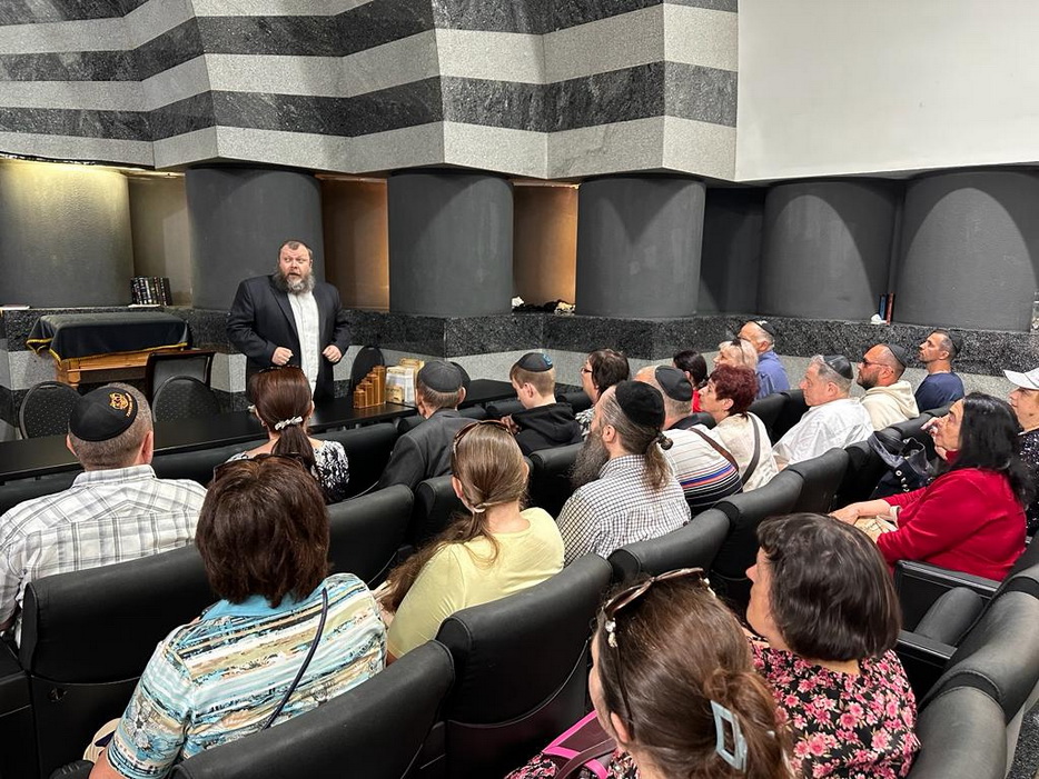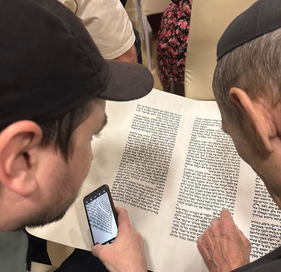 Реб Давид Мануйлов детально рассказал о молитвенном зале синагоги, а именно что и где находится, обратив особое внимание на «арон кодеш» – Святая Святых, где хранятся все свитки Торы. Реб Давид показал открытый свиток, рассказал всем присутствующим о святости Свитка Торы и с каким уважением еврейский народ к нему относится.