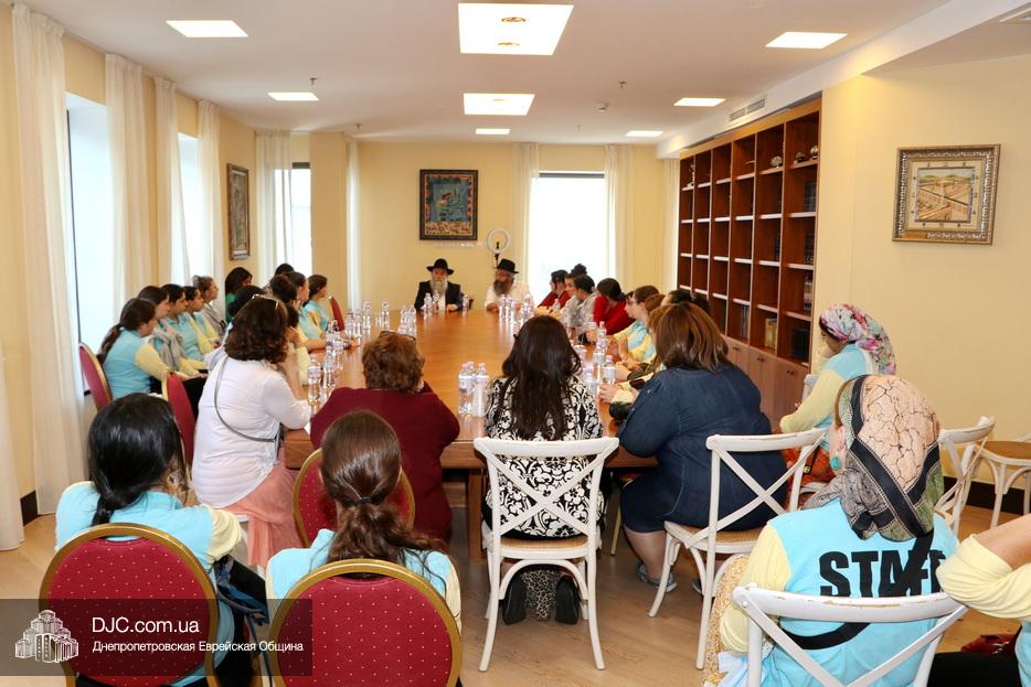 Главный раввин Днепра и региона Шмуэль Каминецкий тепло приветствовал участниц лагеря и их преподавателей, в том числе и организатора этой важнейшей мотивирующей программы для еврейских девочек госпожу Мирьям Свердлову, и рассказал им о значении Днепра для еврейской истории и еврейского народа в глобальном измерении, а также о том, как в Днепре воплощают в жизнь указания Любавического Ребе, которые он поставил перед своими посланниками.