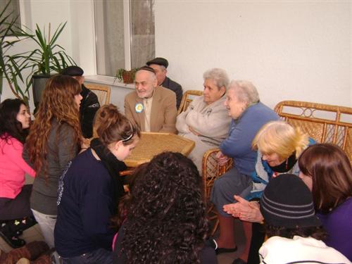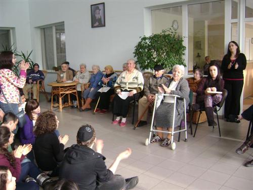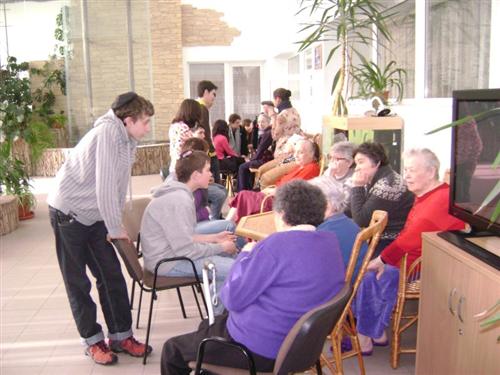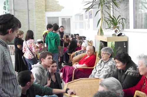 После беседы гости устроили импровизированный концерт еврейских песен, который с удовольствием поддержали жильцы Дома. Также жильцы Дома исполнили специально ребят несколько песен, одна из которых — «Не стареют душой ветераны» — особо затронула сердца детей».
