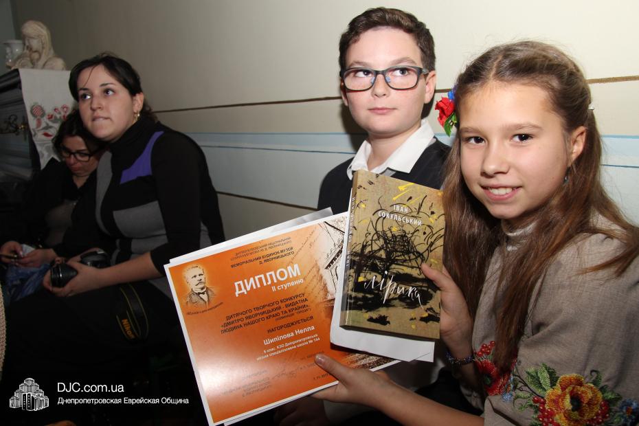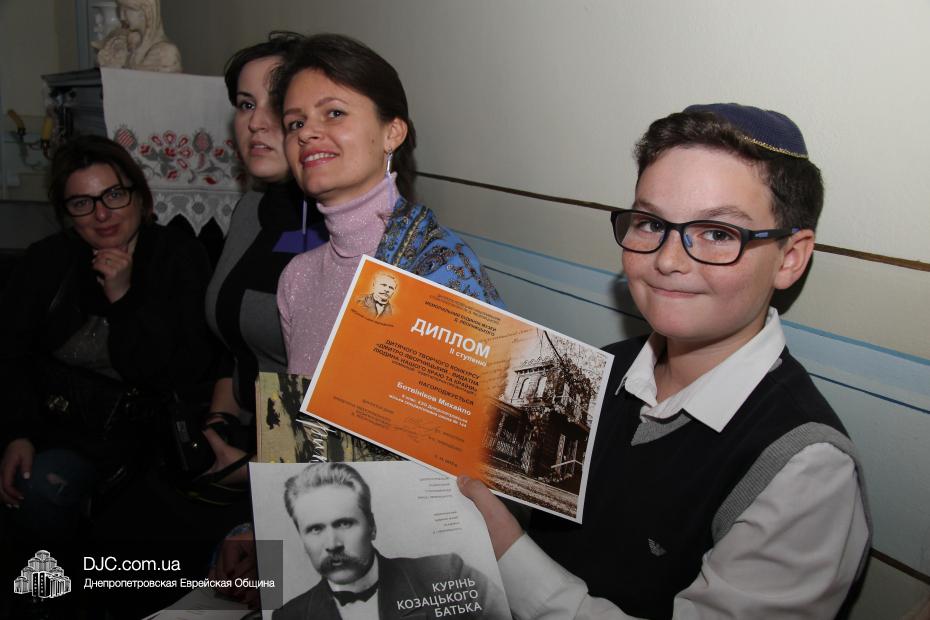 Михаил Ботвинников и Нелли Шепилова, ученики 6 класса еврейской школы Днепропетровска «Ор Авнер Хабад-Любавич» им. Леви-Ицхака Шнеерсона, стали победителями детского историко-литературного конкурса «Д. Яворницький – видатна людина нашого краю та країни», организованного Мемориальным домом-музеем академика Д.И. Яворницкого, посвященного 160-тилетию со дня рождения знаменитого краеведа и патриота Приднепровья.