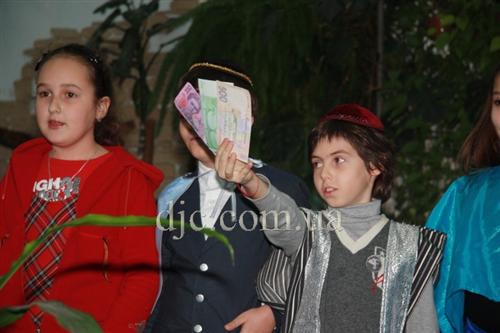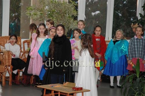 В этот раз дети привезли в подарок своим друзьям ханукальный спектакль по пьесе, написанной Александром Кузьминым, Тамилой Шапиро и Оксаной Литвин из города Черкассы, в котором рассказывается как еврейские дети, прикрывая отход отряда Макковеев в Иудейские горы, ловко обыграли царя Антиоха в игре в волчок (дрейдл), выиграв у него мешок монет, и при этом изучая еврейский алфавит, а также разоблачили все козни Черного ангела и помогли одержать победу Белому Ангелу света и добра.