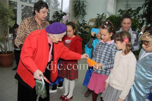 В ответ Ида Самойловна Цыпкина, заместитель председателя совета жильцов Дома, искренне поблагодарив детей за внимание и заботу, вручила каждому из них хануке-гелт.