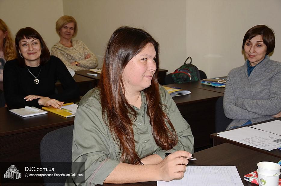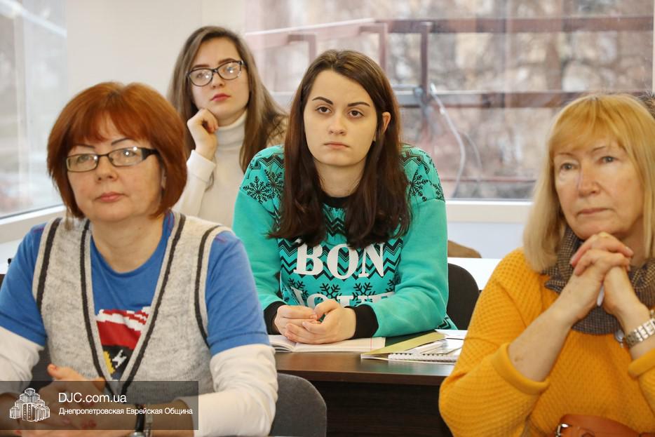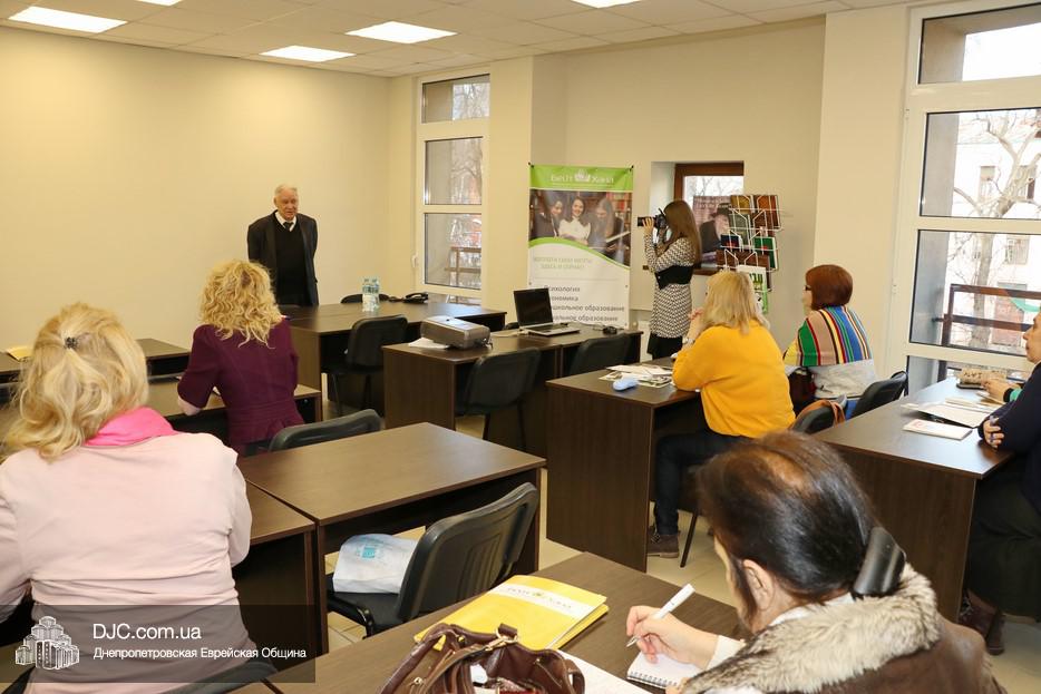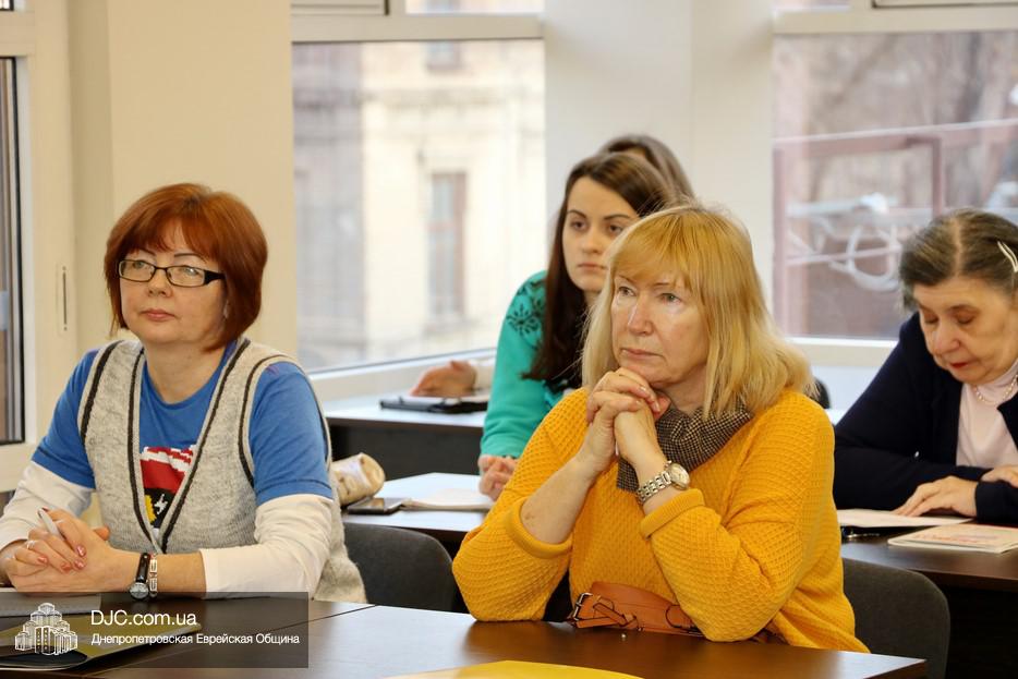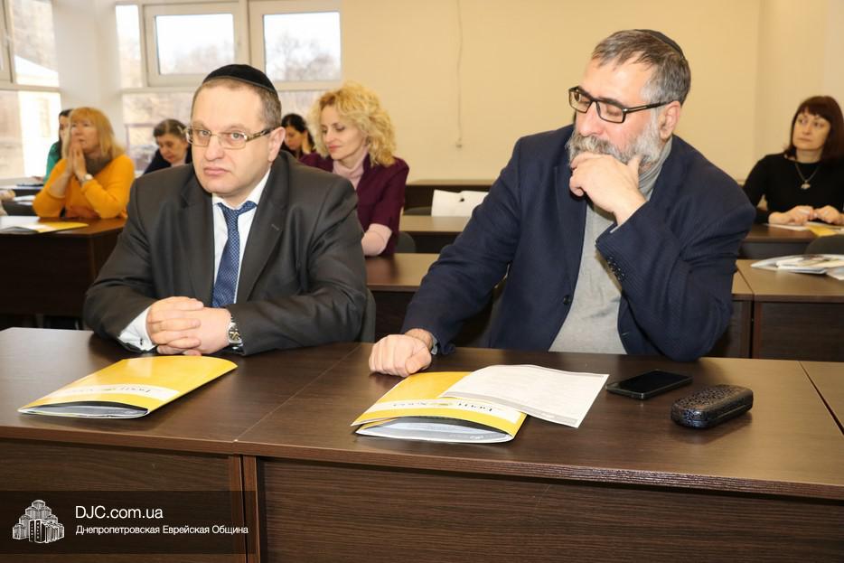 Однако, еврейским вопросам уделялось внимание первостатейное – новациями в области преподавания иврита делилась кандидат педагогических наук Наталья Бакулина, старший научный сотрудник отдела обучения языкам национальных меньшинств и зарубежной литературы «Института  педагогики» НАПН Украины, являющаяся также руководителем «Центра еврейского образования Украины»; а методическую помощь учителям истории и традиции оказывала Раиса Гехтман, методист «Центра еврейского образования Украины». Кроме того, исторические вопросы, в том числе и методику преподавания «проблемных тем», учителям разъясняли раввин Давид Альтман, доктор философии Оксана Трепкачова (Оснат Гельб) и кандидат исторических наук, директор Еврейского Музея и УИИХ «Ткума» доктор Игорь Щупак.