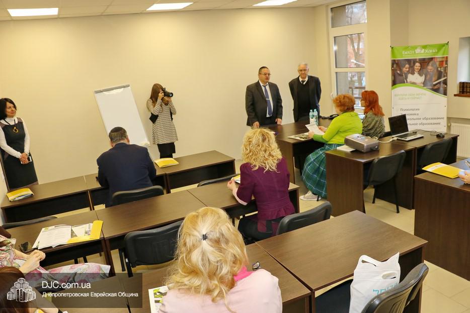 Приветствуя преподавателей еврейских школ, ректор «Бейт Ханы» Римма Аронова выразила надежду, что за эти дни педагоги смогут поднять свою квалификацию на два, а то и на три порядка. Кроме предметов, непосредственно связанных с иудаикой – культурой, языком, историей и традицией, на курсах первостепенное внимание уделялось инновационным педагогическим технологиям, проблемам инклюзии и другим педагогическим актуалиям, с которыми учителей знакомили ведущие специалисты, например, лекцию о тенденциях развития образования в Украине, провел ректор Днепропетровского областного института последипломного  педагогического образования, доктор философских наук, профессор Михаил Романенко; а лекцию на тему «Синдром дефицита внимания у детей с гиперактивностью» читал доктор медицинских наук, профессор Виктор Первый; о методических наработках, связанных с особыми детьми в образовательном пространстве и влиянием на их коррекционное развитие Петриковской росписи, рассказывала кандидат педагогических наук, старший преподаватель кафедры коррекционного образования ДОИППО Ольга Базилевская.