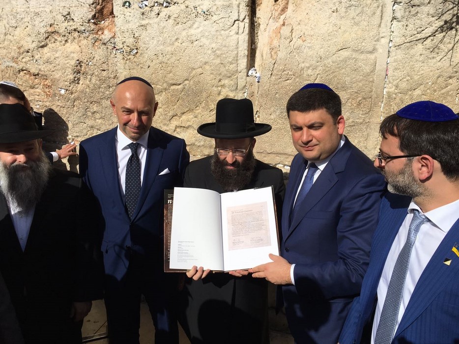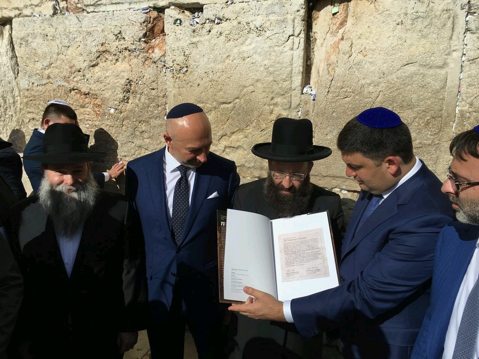 Владимир Гройсман поместил в Котель записку, в которой попросил «покой и мир для Украины, благополучия и процветания украинскому народу, а также поблагодарил Б-га за поддержку Украины во время испытаний», сообщает правительственный сайт Украины.