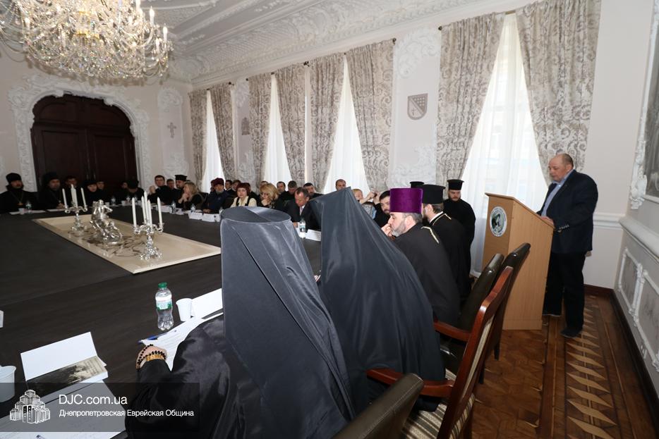 Ранее, выступая в ходе конференции в епархиальном управлении, организаторами которой выступила «Днепровская духовная семинария» и ОО «ЕХК», советник городского головы и член правления еврейской общины Днепра Олег Ростовцев отметил, что «единство в разнообразии» предусматривает как восстановление подлинной исторической памяти каждой этноконфессиональной группы, так и формирование общего представления о будущем, в котором, при сохранении отличий, есть единство, базирующееся на общих ценностях и общем видении. Он также подчеркнул, что подобное открытое квалифицированное и компетентное обсуждение самых злободневных и актуальных вопросов является важной частью формирования духовной составляющей украинской политической нации.