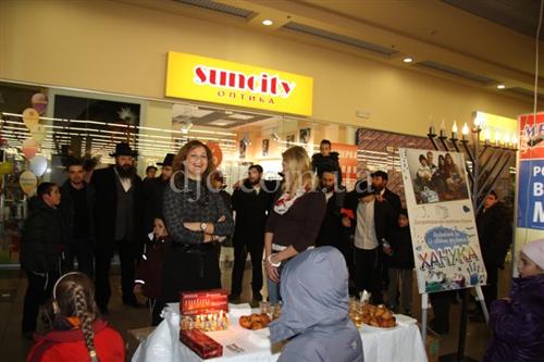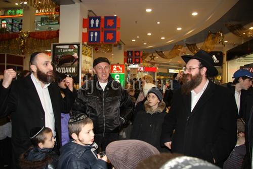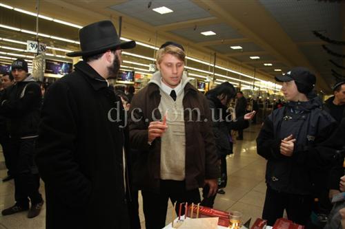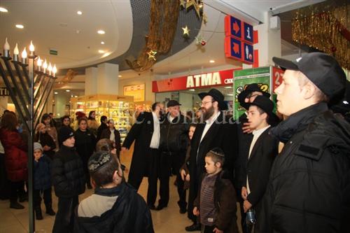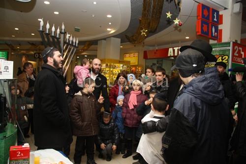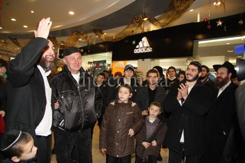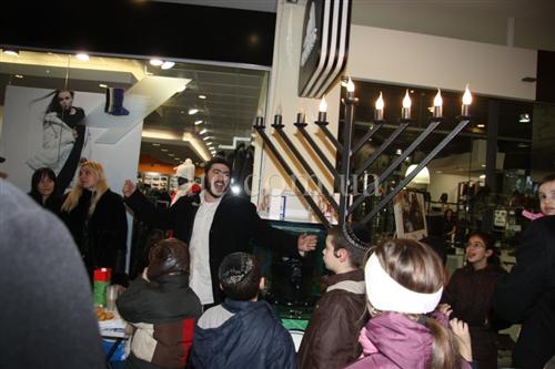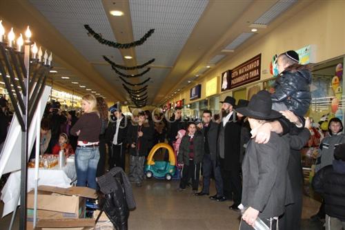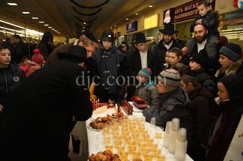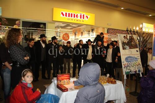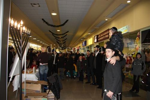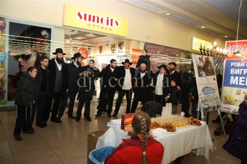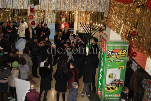 Возле больших торговых центров кортеж делал остановку, все участники парада заходили внутрь и возле ханукальных светильников устраивали большое веселье с песнями, танцами и угощениями.