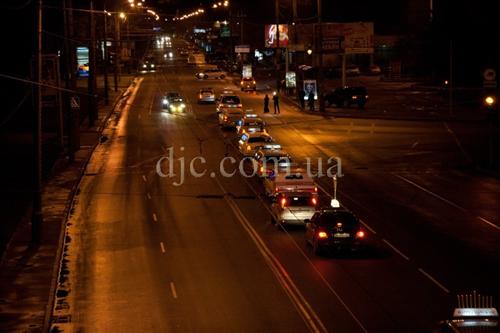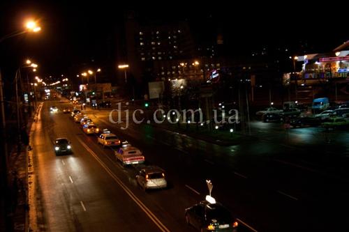 Колонна торжественно отъехала от синагоги, сопровождаемая громкими звуками еврейских мелодий, которыми оглашал вечерний город «Автобус доброты и милосердия» организации «Цивос Гашем», замыкавший колону. Парад проехал по главным магистралям города, дважды пересекая Днепр по Центральному и Кадакскому мостам. Свыше трех часов продолжалась торжественная поездка кортежа по городу, и многие горожане приветствовали машины, украшенные Ханукиями, дружескими сигналами своих автомобилей.