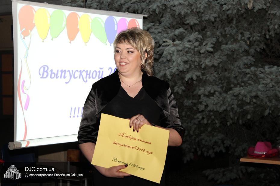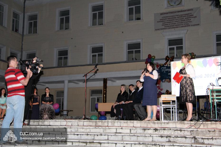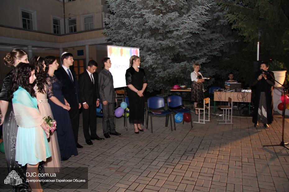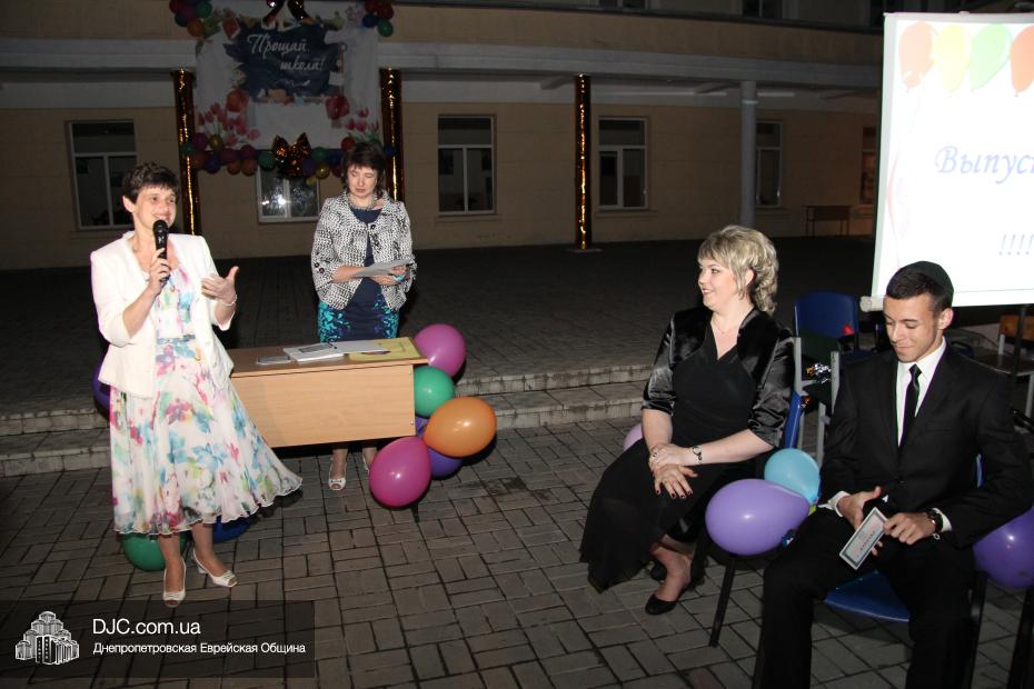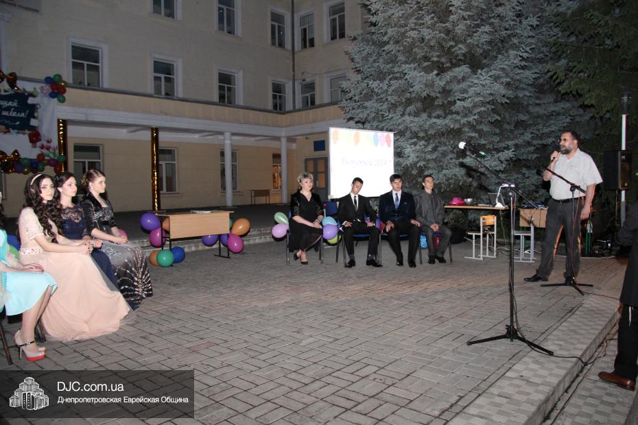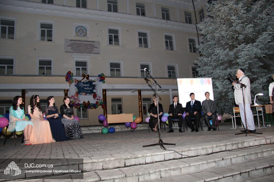 От имени всей еврейской общины и Главного раввина Днепропетровска и региона Шмуэля Каминецкого пока еще одинадцатиклассников поздравил член правления общины, руководитель ее информационного департамента Олег Ростовцев. Также поздравить детей с окончанием школы пришли предыдущие директора школы – первый директор Семен Каплунский и его приемник Георгий Скороход, который прочитал детям и их наставникам трогательное стихотворение. Далее перед собравшимися выступила куратор школы по еврейскому компоненту Юдит Барам.