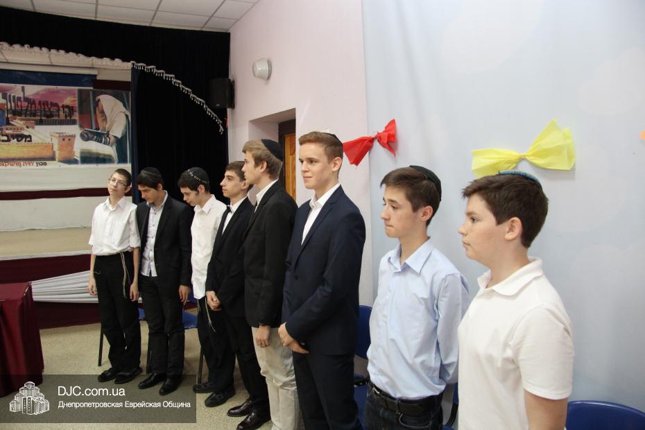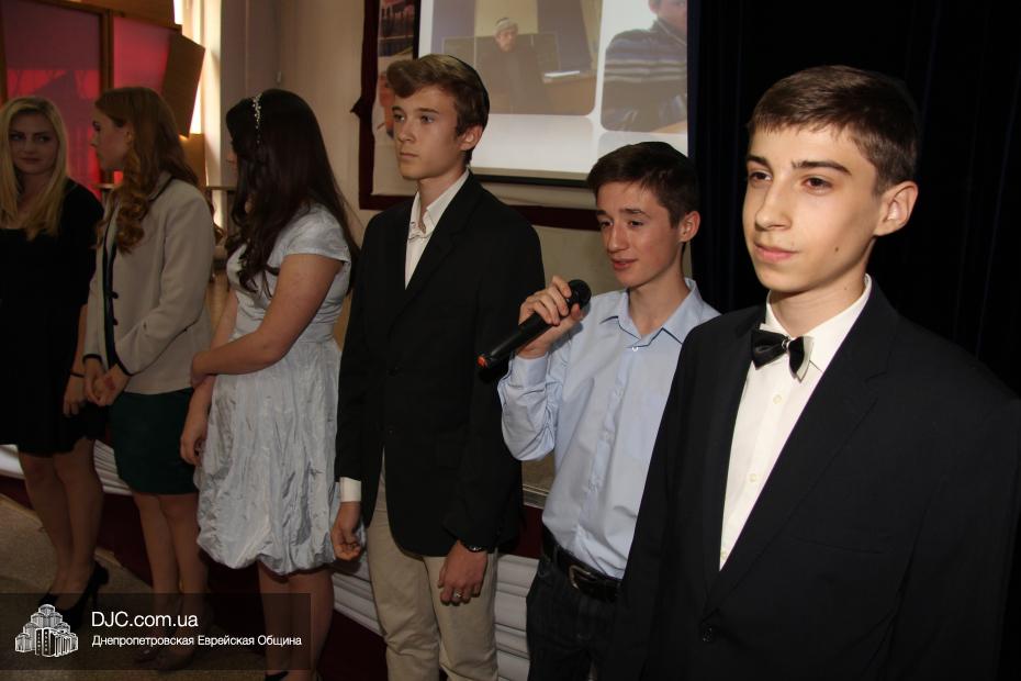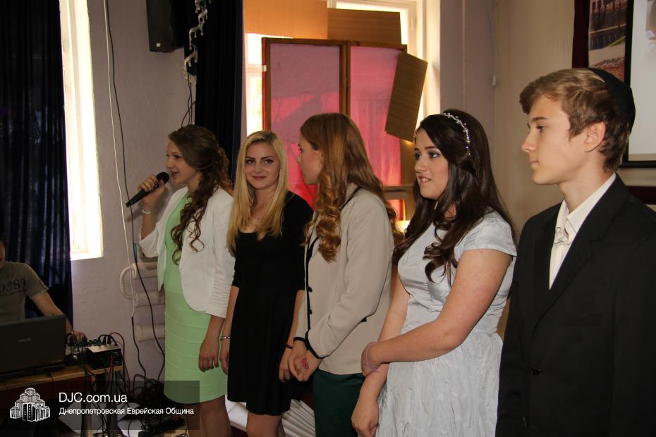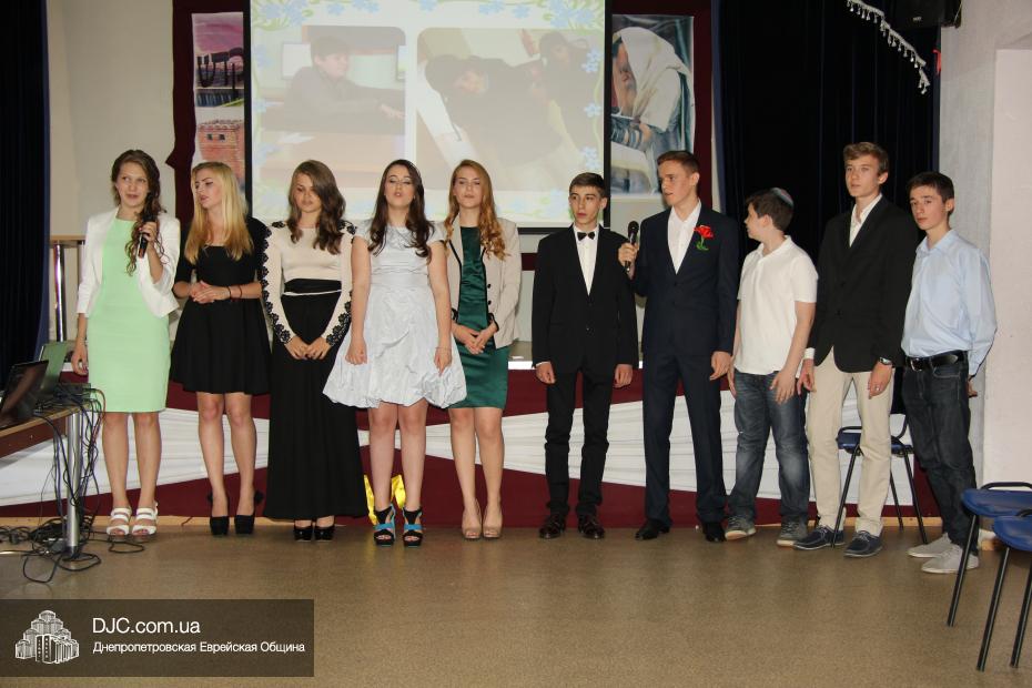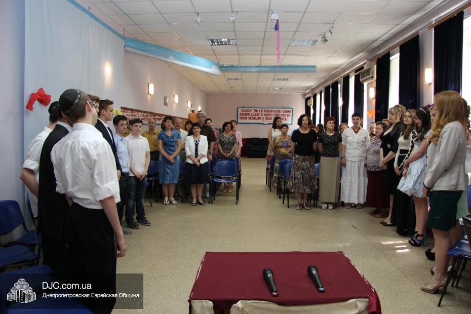 Мероприятие прошло в актовом зале школы и по традиции началось с исполнения гимнов Украины и Израиля. Поскольку выпускной проводился в Дни скорби, объявленные в Днепропетровске, порядок его проведения был скорректирован, и в выступлениях и напутствиях выпускникам звучала тревога за то, что молодым людям придется жить в мире полном угроз, и надежда на то, что образование и воспитание, которое они получили в еврейской школе Днепропетровска, помогут им справиться с задачей его исправления и улучшения.