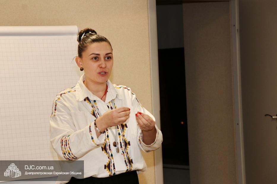 Завершающей частью встречи стал тренинг, проведенный Элиной Хатуевой, которая была представлена как кризисный психолог в области поведенческой терапии, «Арт- і МАК-» терапии, нейропсихологической диагностики и коррекции с опытом работы более двенадцати лет. Тренинг получил название «Любити не можна карати (де місце для коми?)».