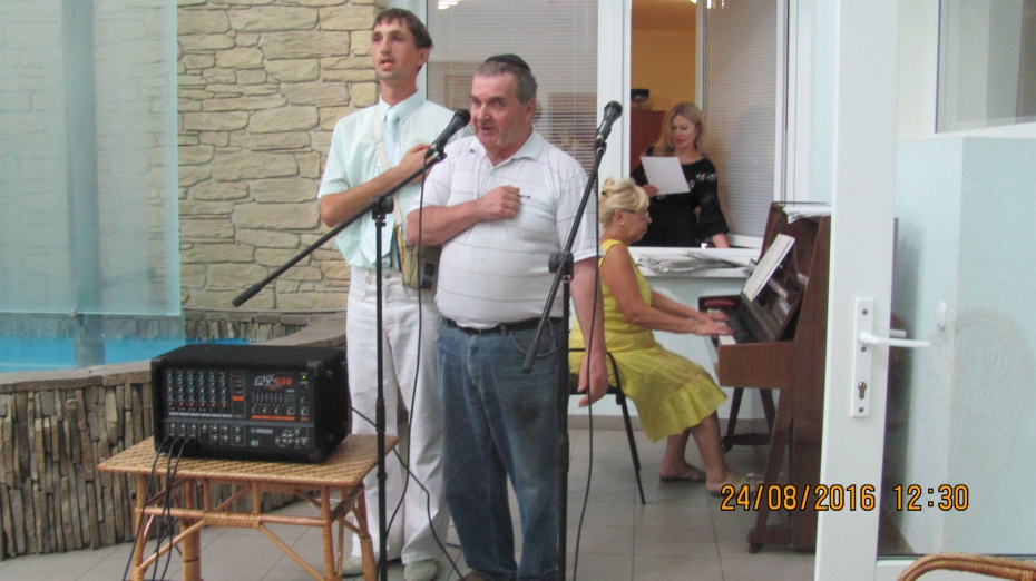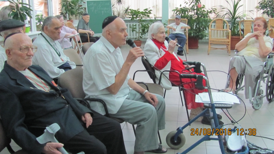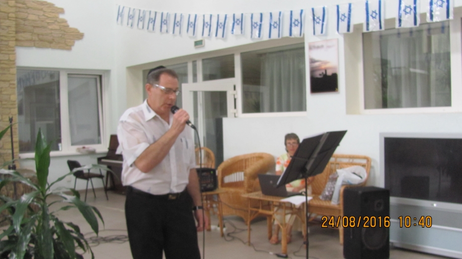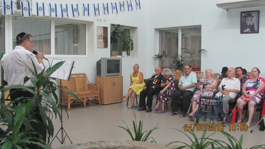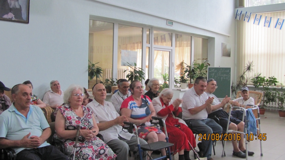 Специально, чтобы порадовать пожилых людей в этот знаменательный день, в «Бейт Барух» приехал известный исполнитель и участник музыкальных проектов общины Валерий Литман, он начал с исполнения гимна Украины, а затем исполнил песни на украинском, иврите, идиш, русском, которые доставили много удовольствия пожилым людям.