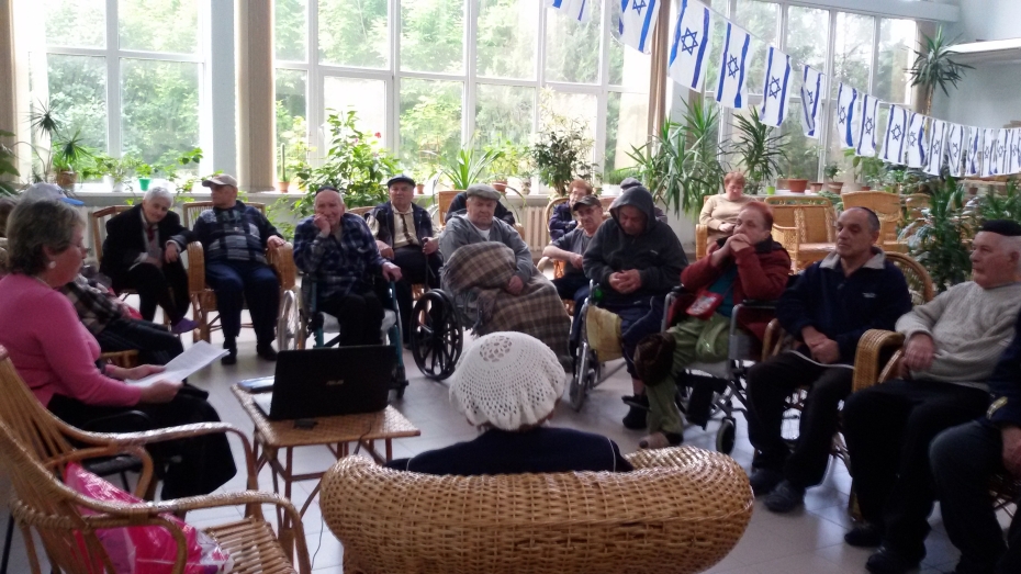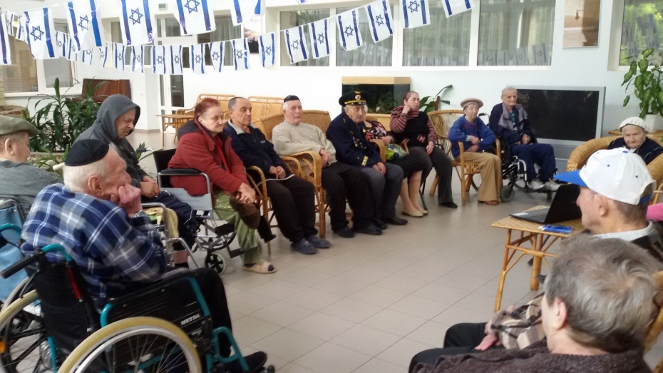 Через несколько дней в более камерном кругу жители «Бейт Баруха» отметили День независимости Израиля. Благодаря помощи Израильского Культурного Центра «зимний сад» и столовая были украшены атрибутикой и флагами Еврейского Государства, а сотрудники и жильцы Дома подготовили разнообразную праздничную концертную программу.
