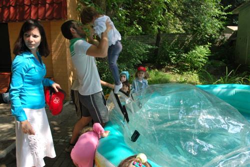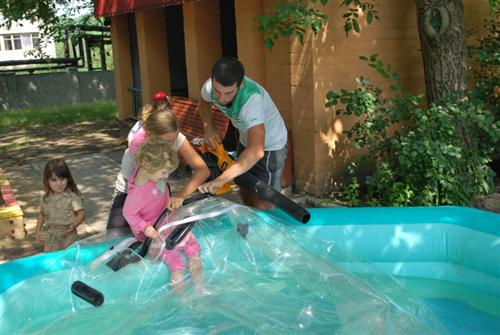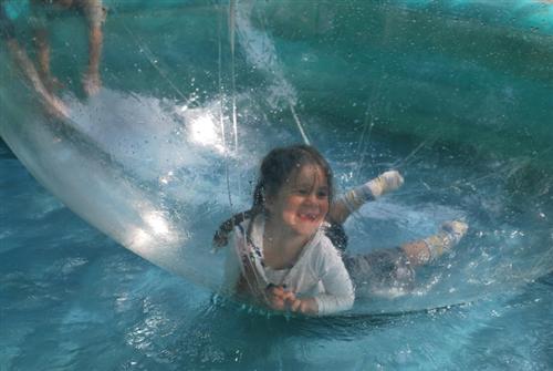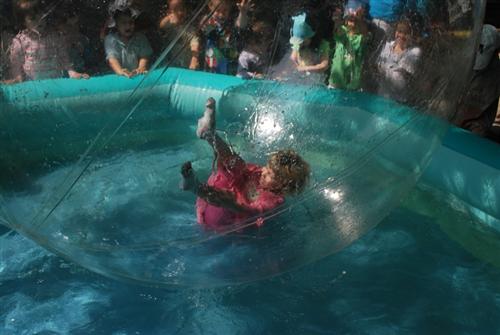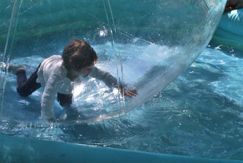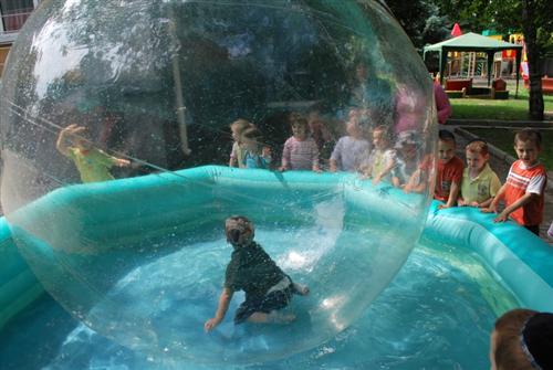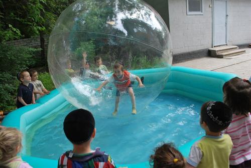 Радости детей, имеющих возможность побегать по воде и покувыркаться в надувном шаре, тем самым наглядно познакомившись с таким сложным понятием как атмосферное давление, была не предаваема.
