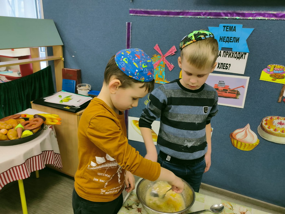 В «Бейт Циндлихт», дошкольном образовательном центре (входящем, вместе с еврейской школой, в единый УВК№144), темой этой недели стала «Хлеб и хлебобулочные изделия», воспитанники учили, откуда берется хлеб дома.